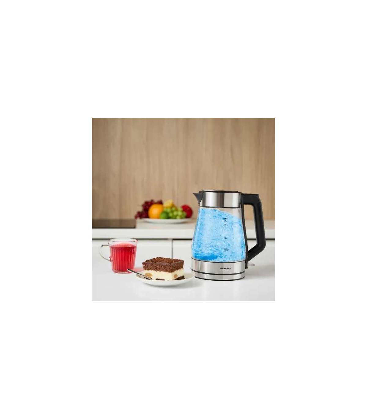 Объем: 1.7 л 360° вращаемый чайник Долговечный и устойчивый к коррозии корпус из боросиликатного стекла. Синяя LED подсветка. Скрытый нагревательный элемент из нержавеющей стали Защита от cухого кипения. Автоматическое выключение при закипании Мощность: 220-240 В, 50/60 Гц, 1850-2200 Вт