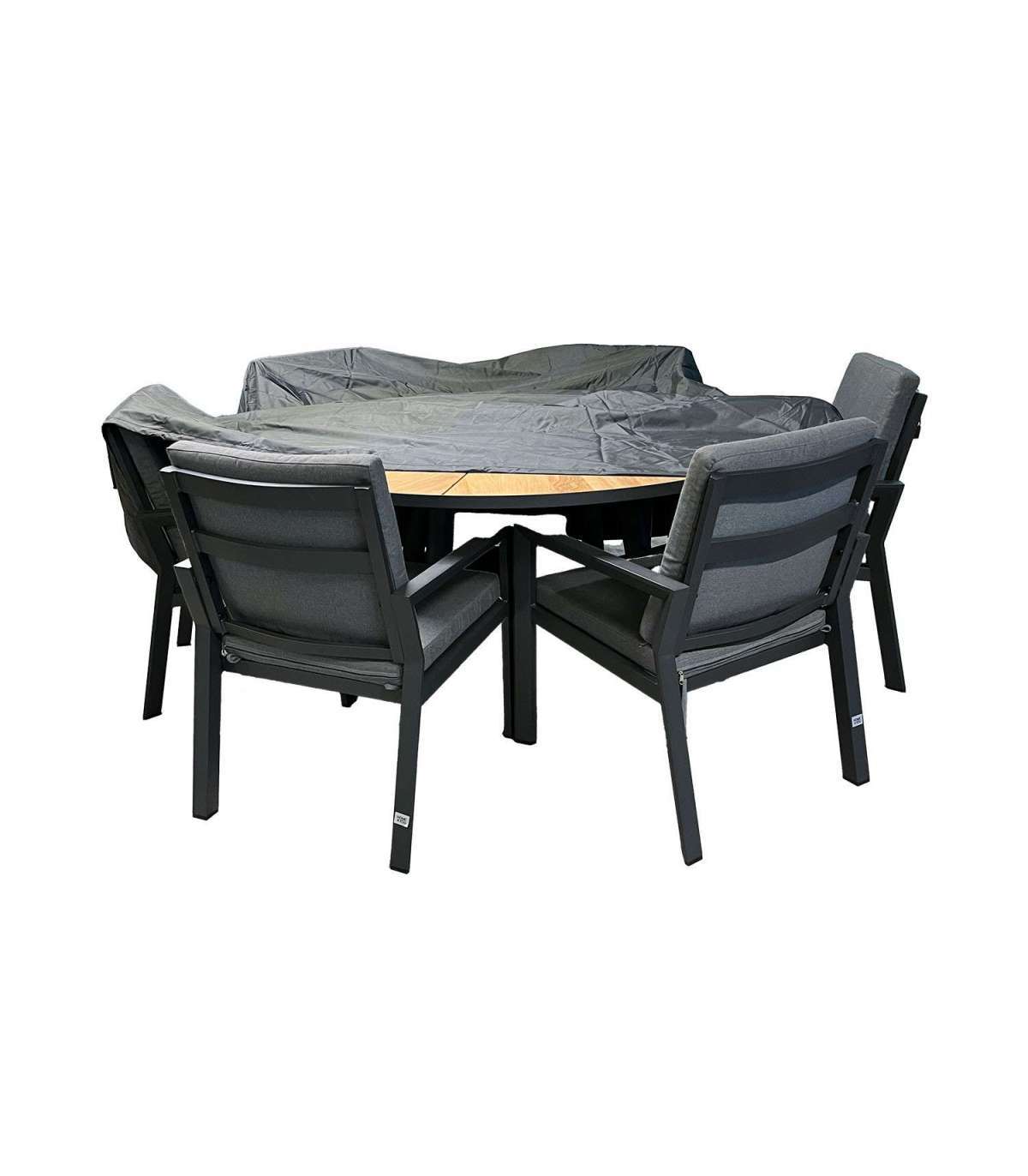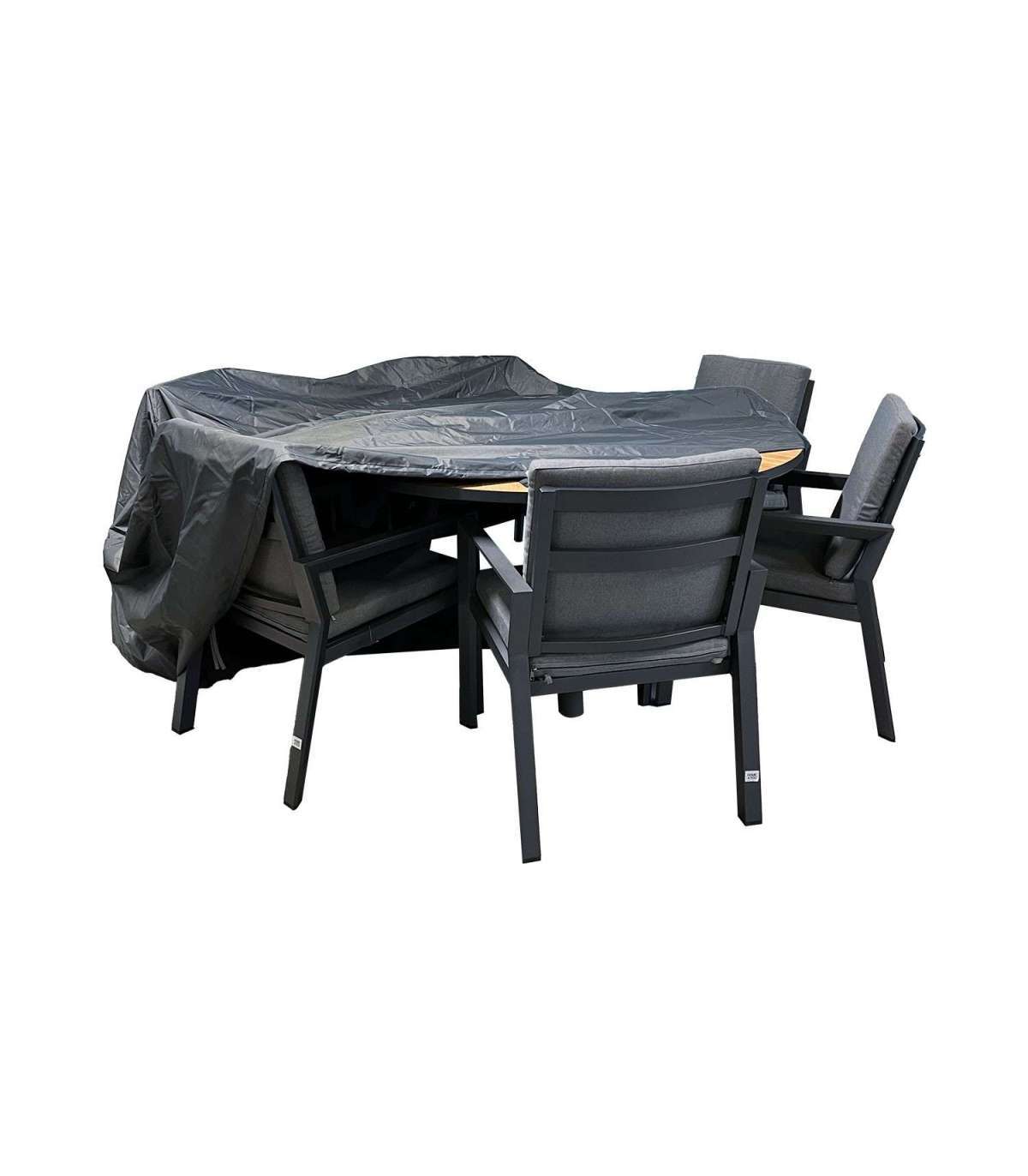 TÄHELEPANU! Mööblikate aitab pikendada mööbli eluiga ning on turvaline kaitse välimööblile, kuid ei taga samasuguseid tingimusi nagu siseruumides hoiustamine. Tugeva vihma korral võivad kattega kaetud mööblile koguneda veelombid. Eemaldage kogunenud vesi esimesel võimalusel. Peske katet vastavalt tootele kinnitatud hooldusjuhendile. Mööblikatte kasutamine ei ole sobiv lahendus aiamööbli ületalve õues hoidmiseks.