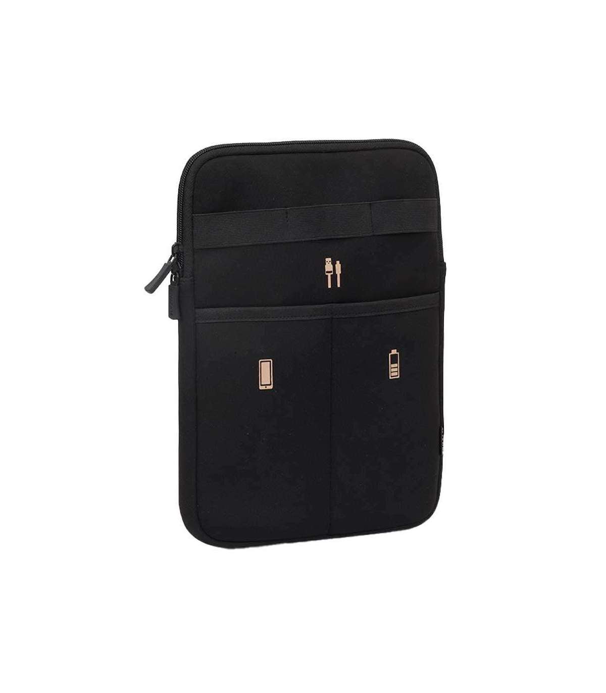 This Antishock travel organizer fits a Tablet up to 10.1 inches. Elegant dark black fabrics communicate professionalism, and a symmetrical pocket and zip system gives a sense of order and sophistication. Ideal for urban business people and students, the organiser offers maximum capacity for your devices, accessories and other items.