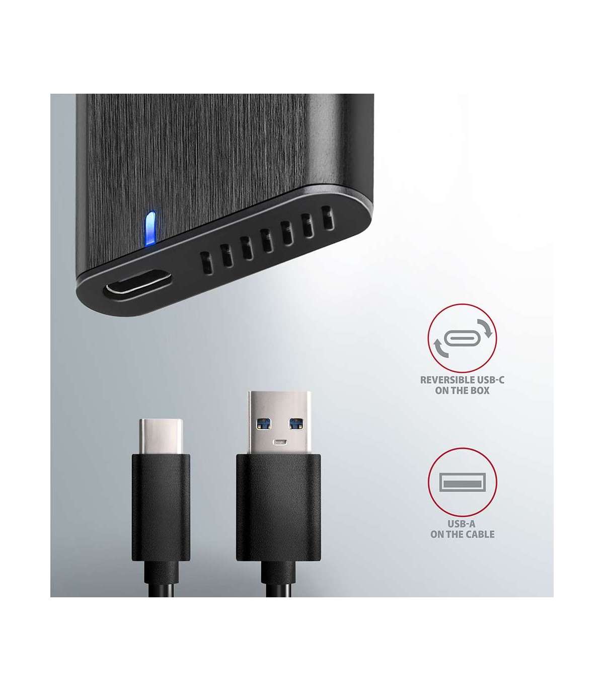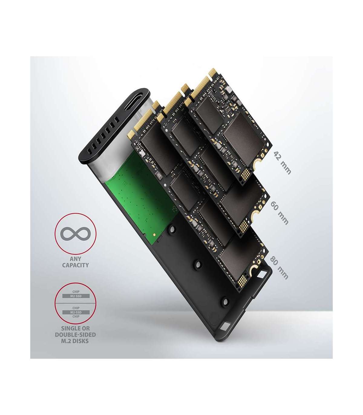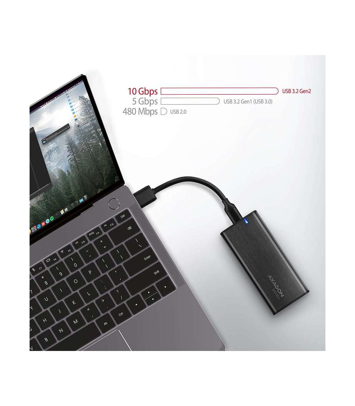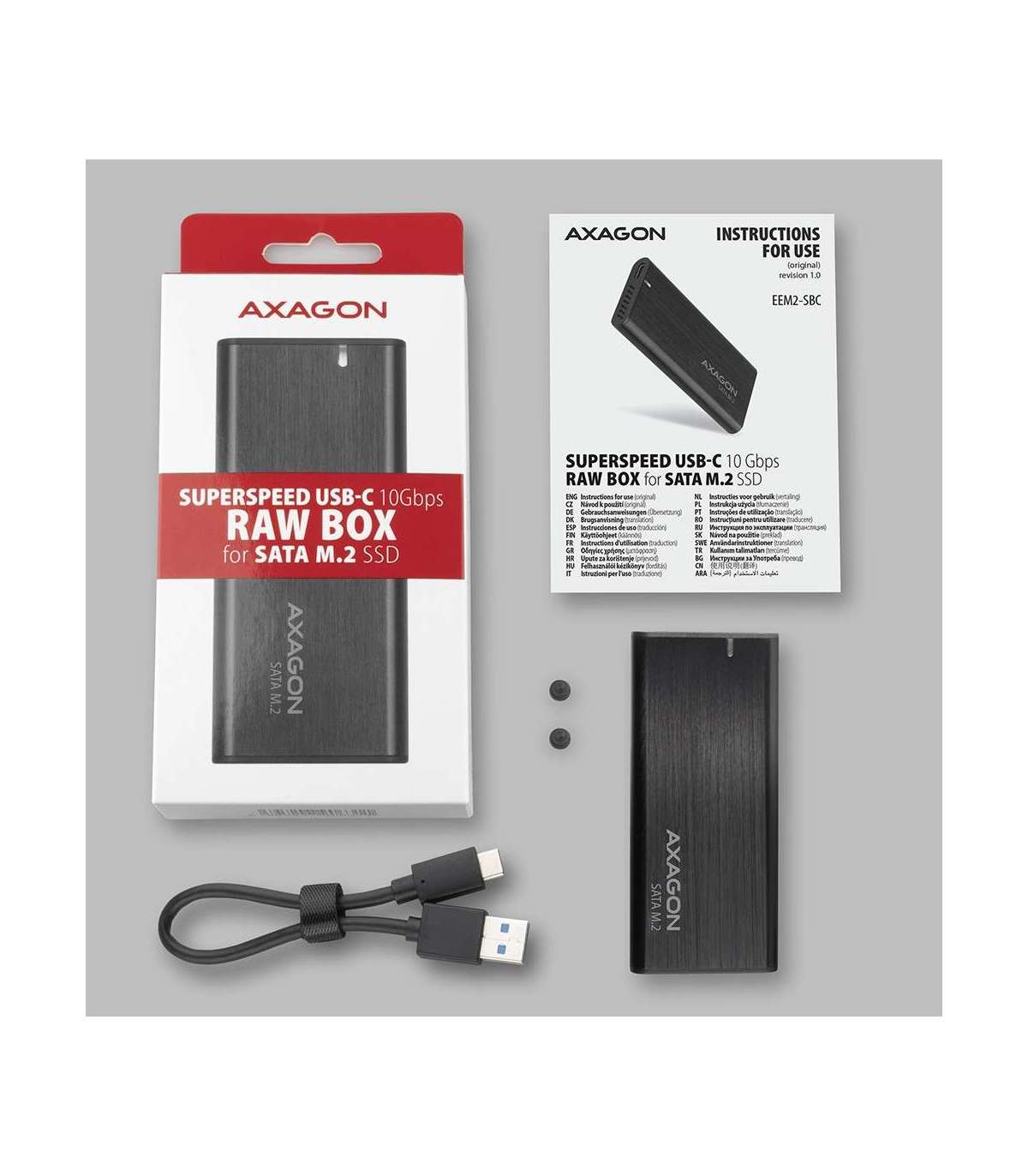 - External USB-C 3.2 Gen 2 metal box for M.2 SATA SSD disks