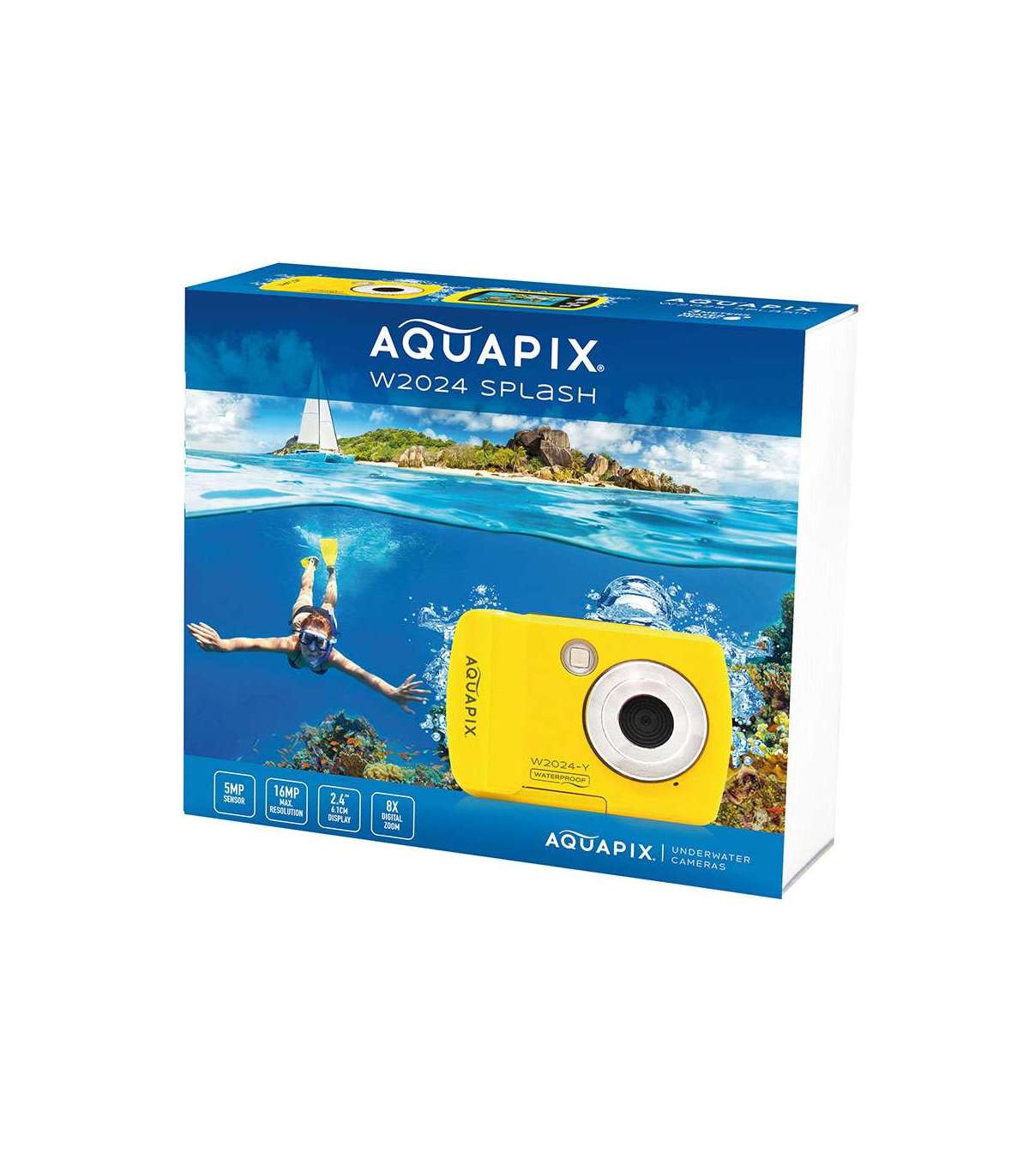Väljast kaitstud W2024 Splash on seest täis suurepärast tehnoloogiat. 8 -kordse digitaalse suumi ja kuni 16 -megapikslise eraldusvõimega on teie pildid alati fantastilised. Pildistage värvikat veealust maailma ja ärge unustage loojuvat päikest ja oma surfamisõpru.