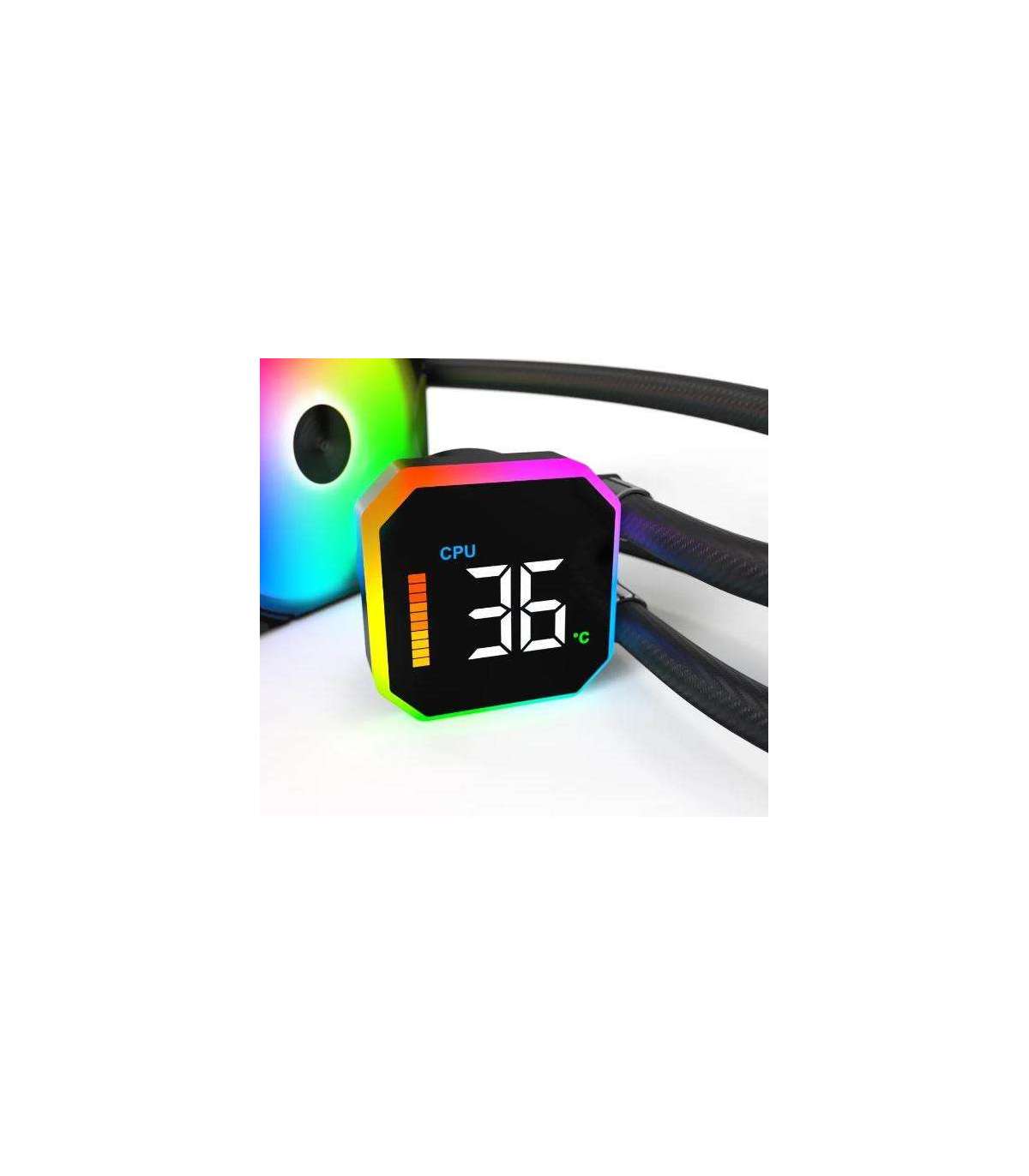 Встроенный экран на блоке охлаждения отображает температуру CPU и GPU в реальном времени. Это даёт пользователю возможность следить за состоянием системы без запуска дополнительных программ. Чёткое и контрастное изображение обеспечивает удобство мониторинга в любых условиях освещения.