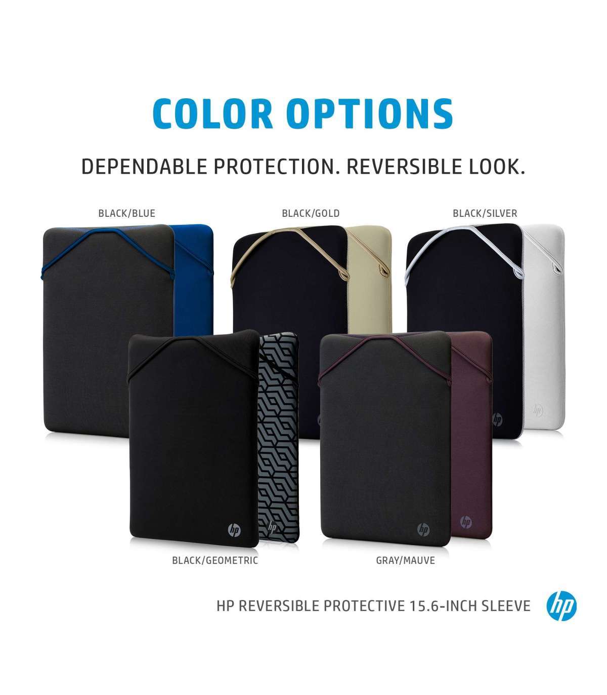HP 15.6 Reversible Sleeve, Sanitizable - Black, Blue