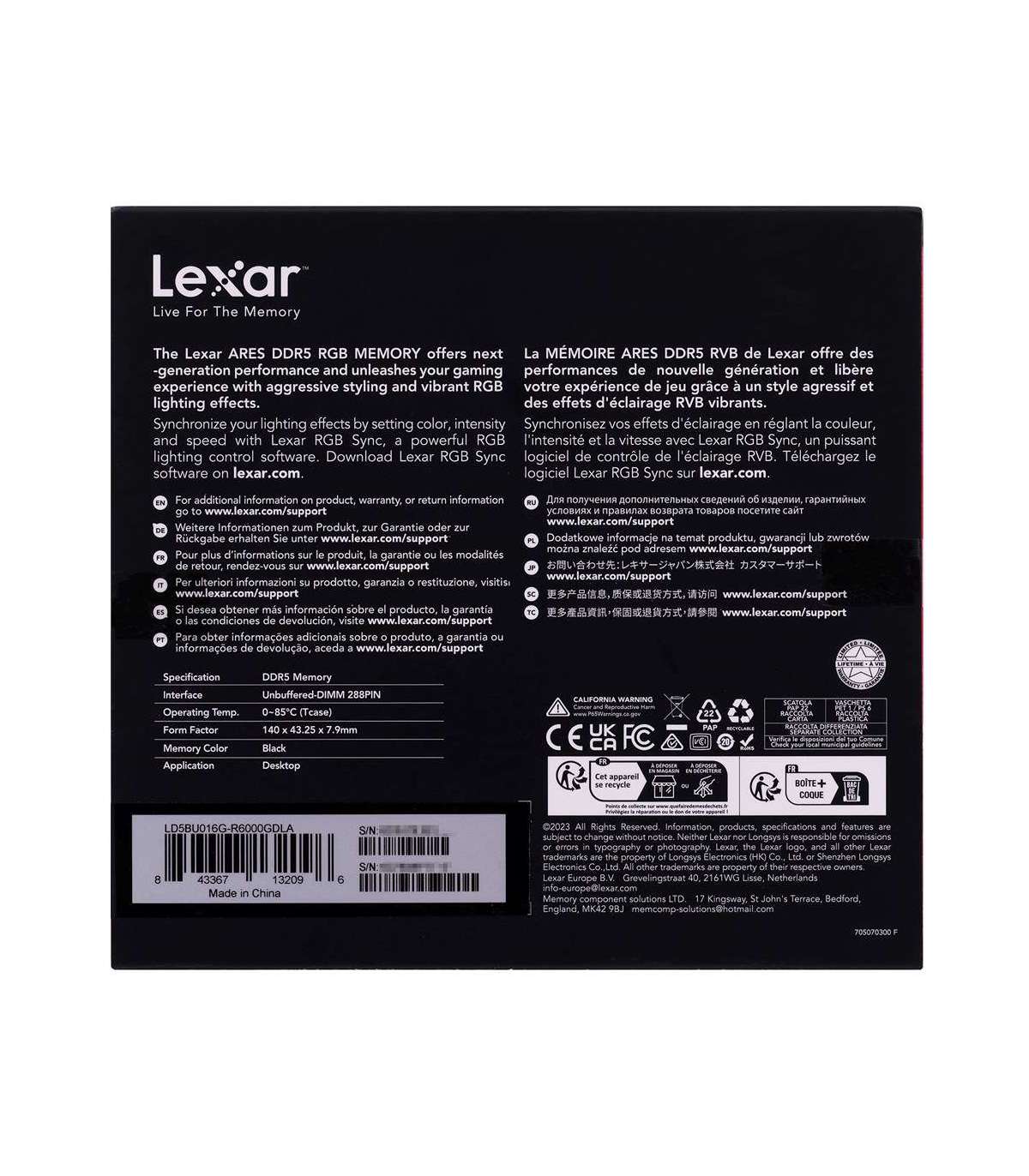 Lexar ARES RGB memory module 32 GB 2 x 16 GB DDR5 6000 MHz