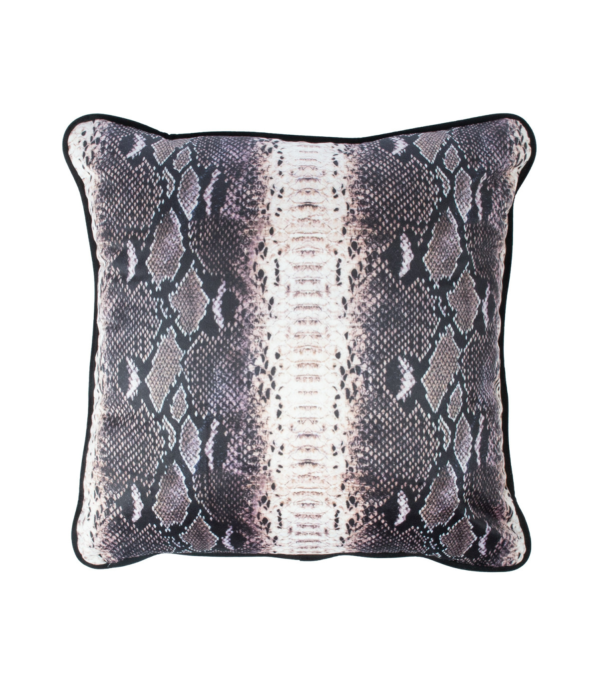 Подушка BLACK HOLLY 45x45см, змеиный узор на черном фоне