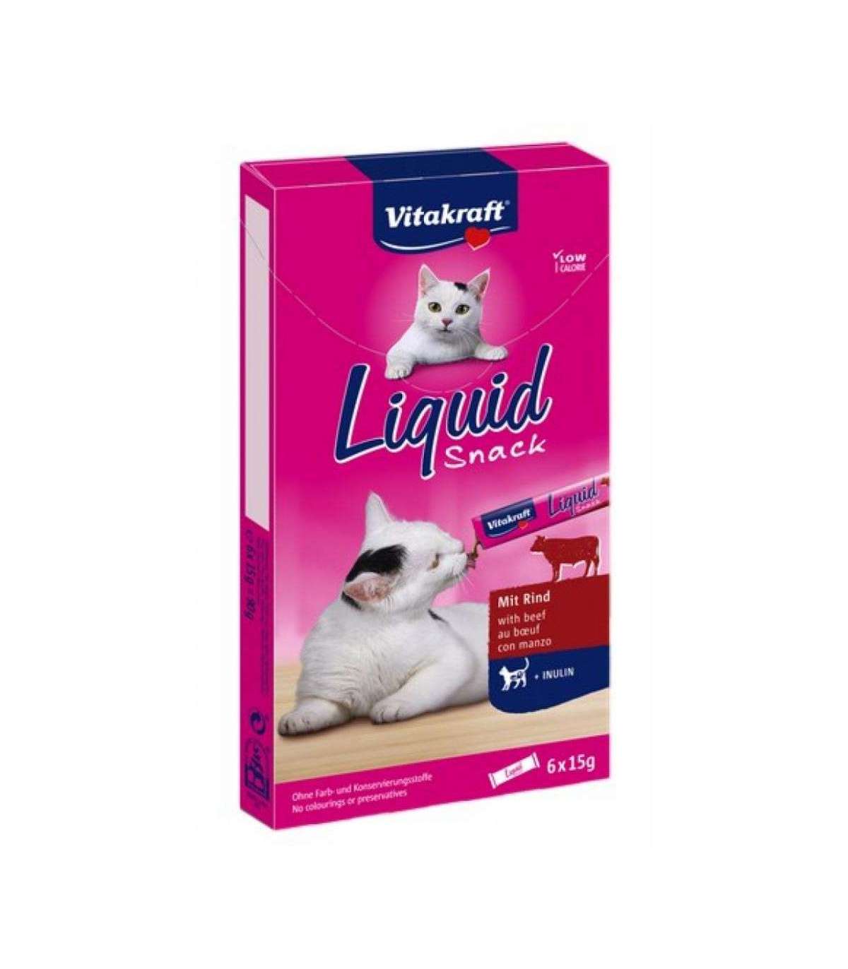 VITAKRAFT Cat Liquid-Snack with beef - cat treats - 6 x 15g