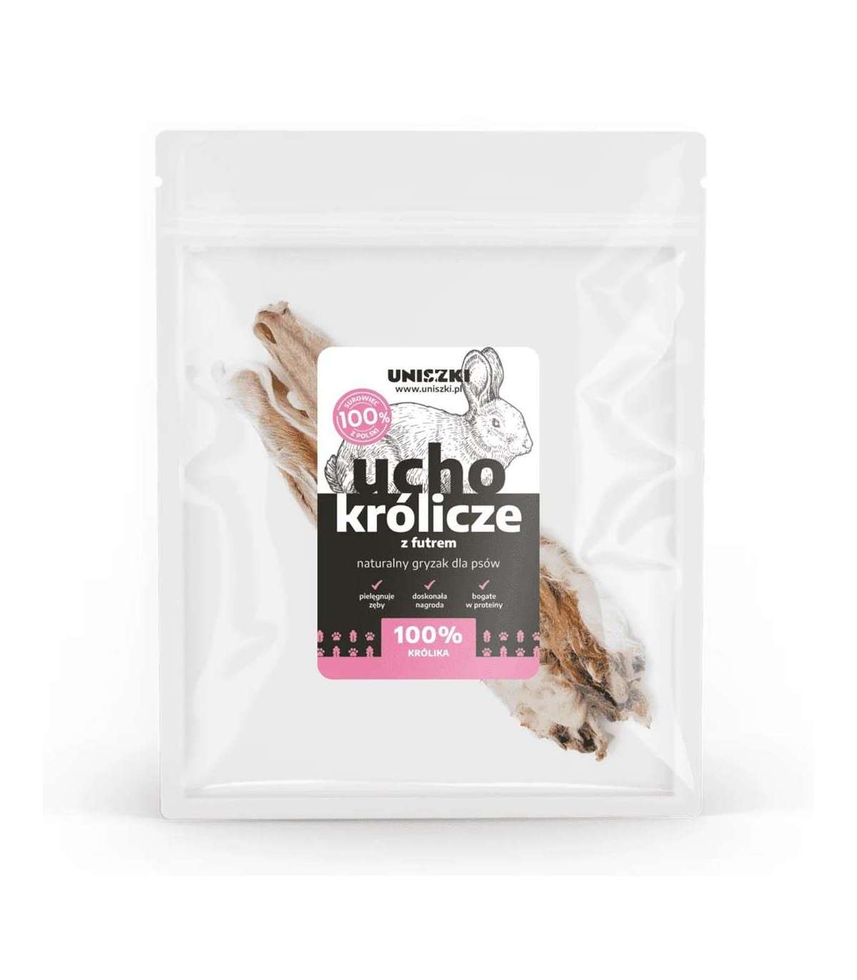 UNISZKI Rabbit ear with fur - treat for dogs - 2 pieces