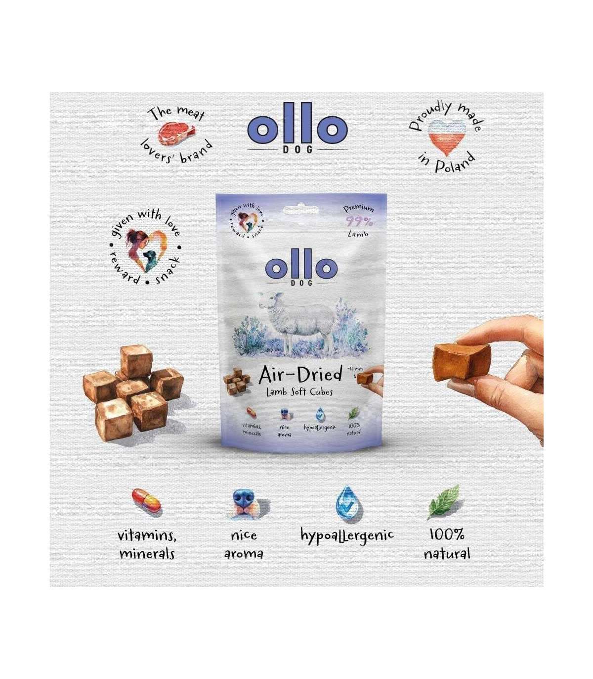 OLLO Air Dried Training Lamb Cubes - dog treat - 80g