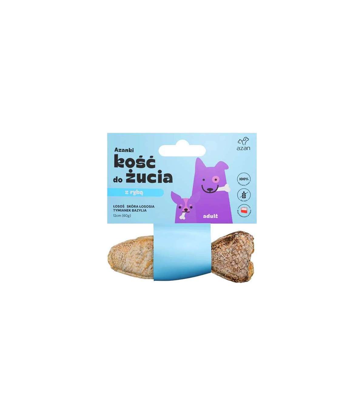 AZANKI Bone with salmon in salmon skin with thyme and basil in fish shape - treat for dogs - 12 cm