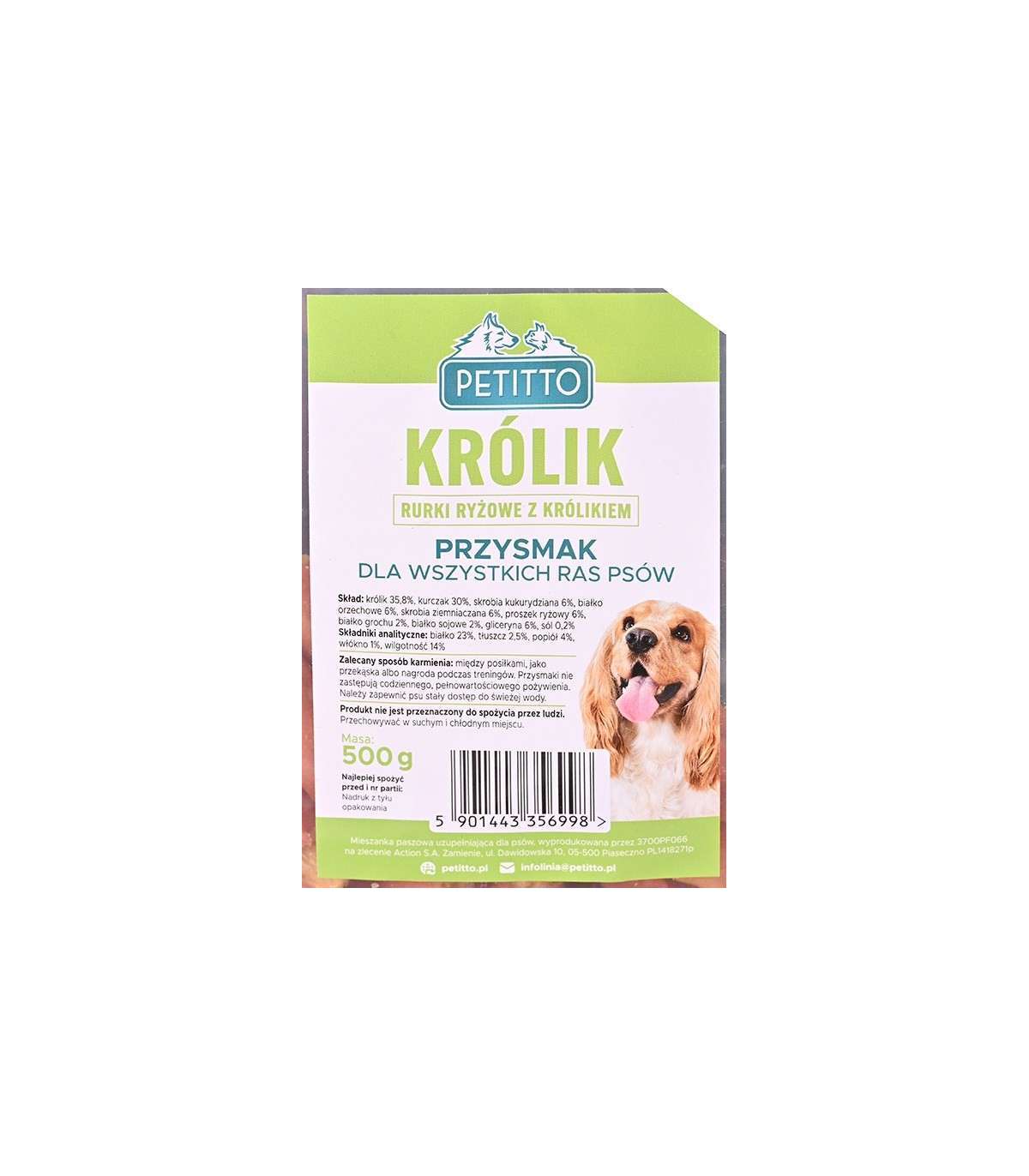 PETITTO Rurki ryżowe z królikiem dla psa 500g