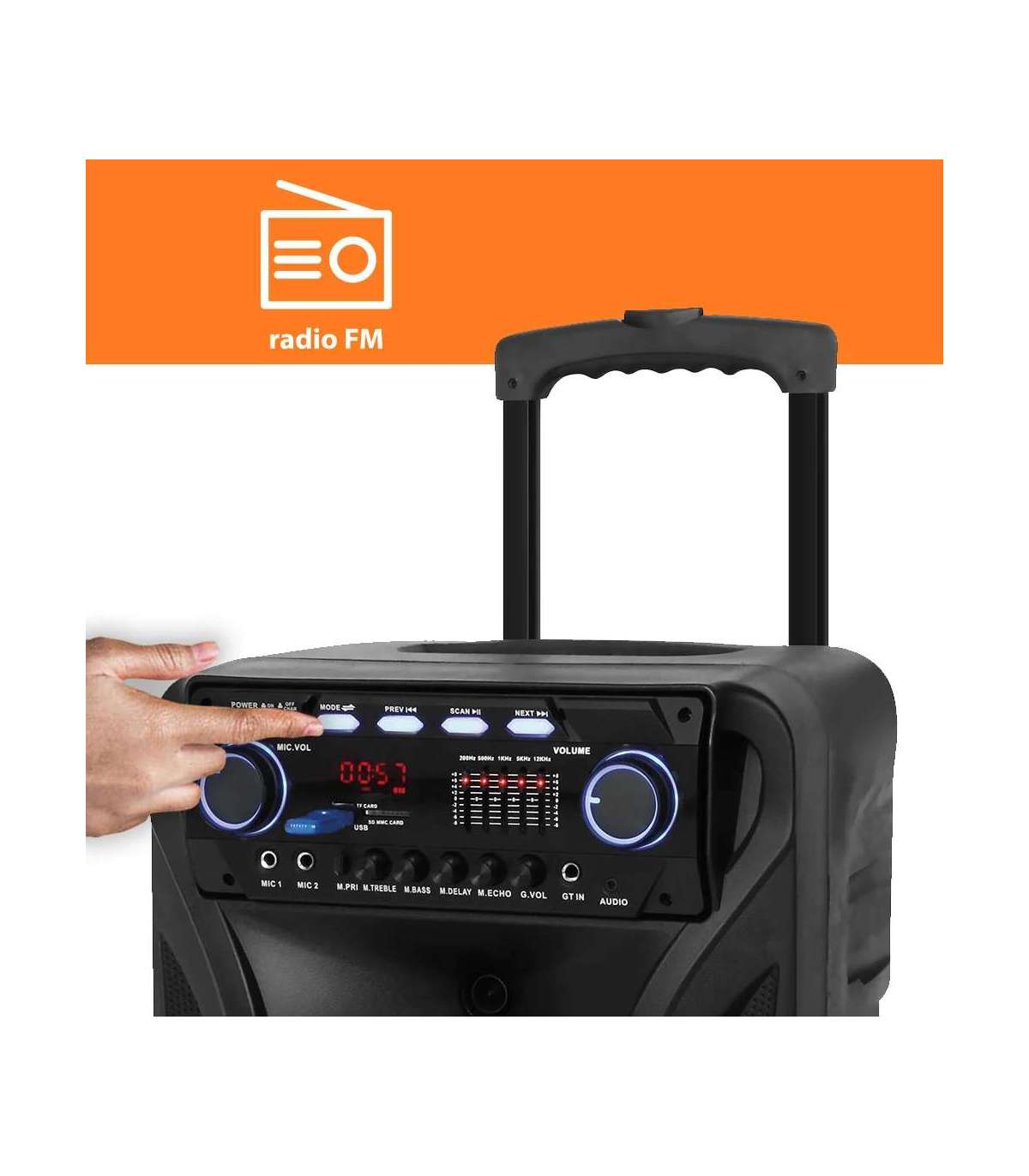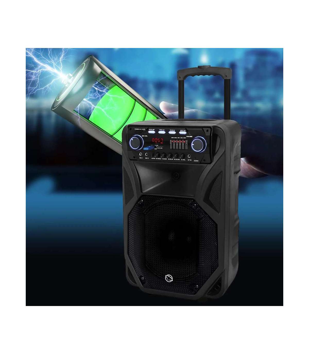 Selle seadme vaieldamatu eelis on mobiilsus tänu sisseehitatud akule, kompaktsed mõõtmed ning kokkupandav käepide ja rattad, mis hõlbustavad transportimist. Tasub mainida, et kõlari aku tööiga on kuni 5 tundi, nii et saad kuulata lemmiklugusid ilma seadet vooluvõrku ühendamata ka lõkke ääres.