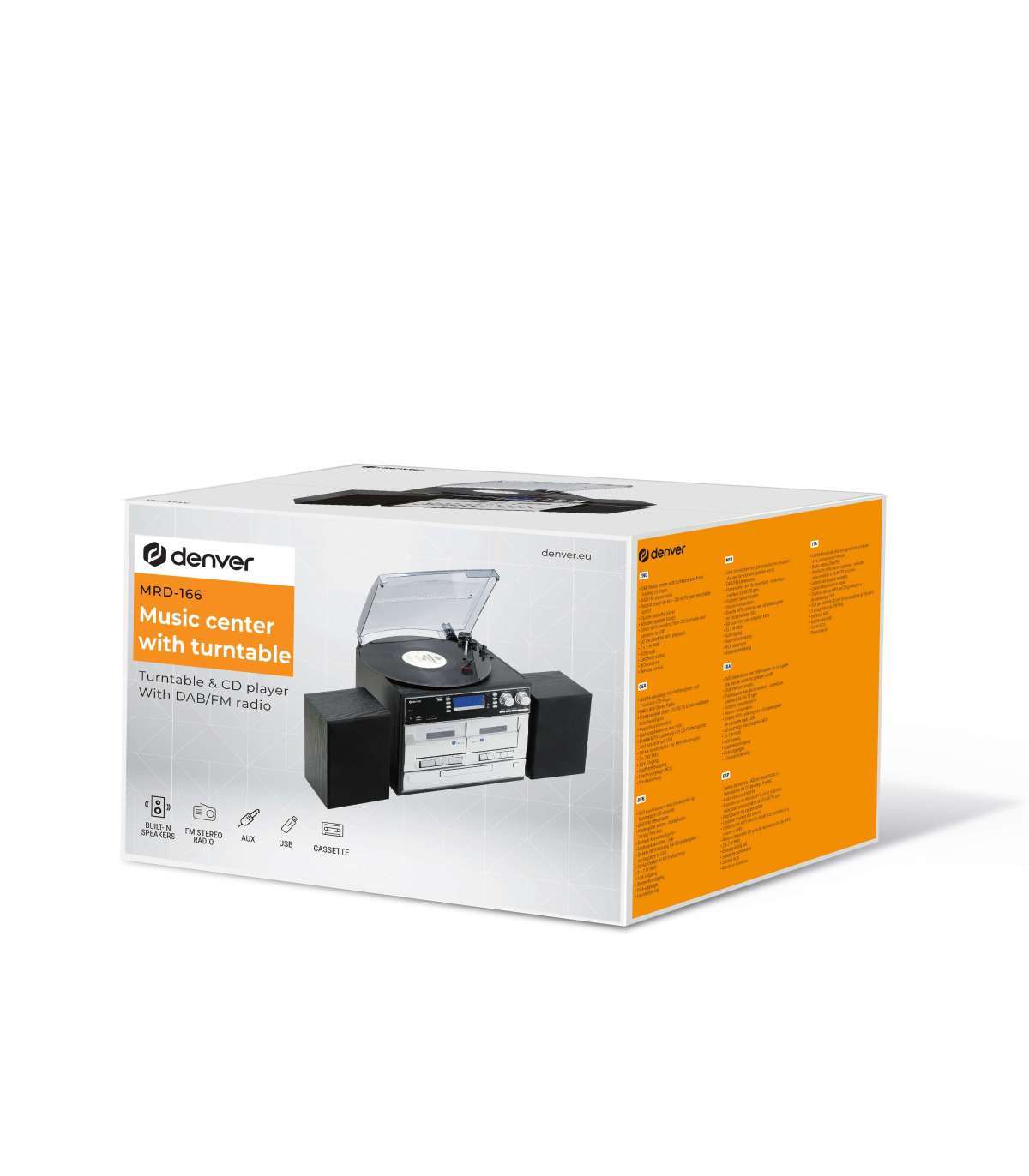 DAB+ muusikakeskus pöördlaua ja eestlaetava CD -mängijaga