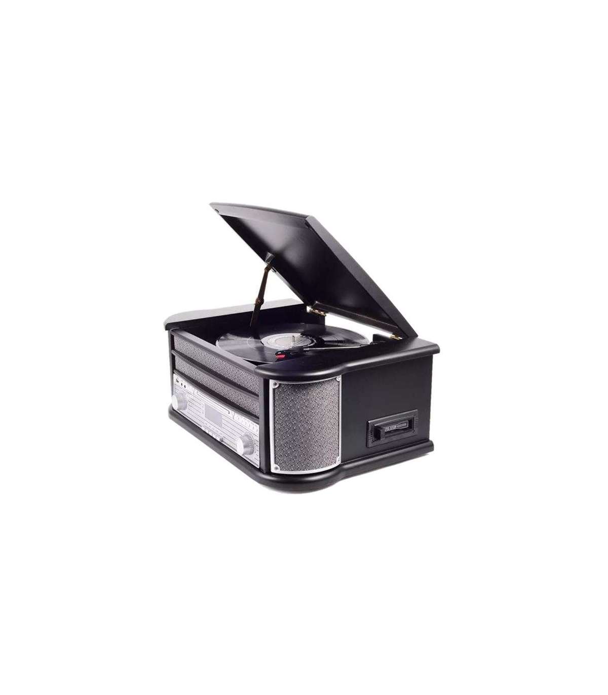 Puidust retromuusikakeskus koos plaadimängijaga (3-käiguline 33-1/3, 45 78 RPM)