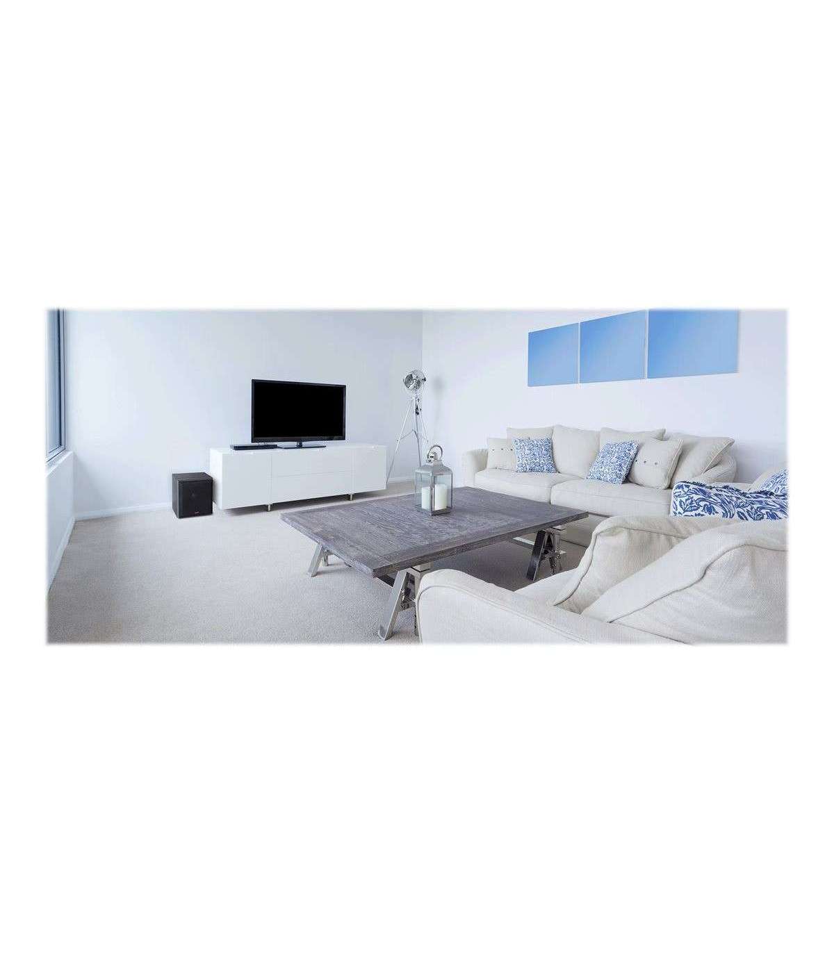 - 8" Speaker Driver for distortion-free bass; Low pass filter with 38Hz frequency response; Reduced acoustic resonance with MDF enclosure; Automatic standby to conserve power; Adjustable Bass and Frequency Bandwidth