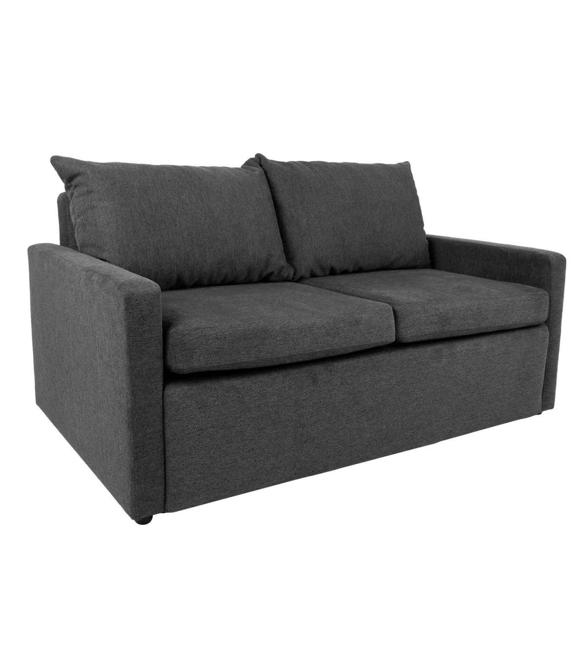 Диван-кровать COLOGNE, 152x92x89см, 2 подушки. Размер спальной зоны: 134х195см, высота сиденья 45см. Материал покрытия: ткань темно-серая CHICAGO-97, 94% полиэстер / 6% нейлон, водоотталкивающий, мартиндейл: 100 000. Каркас и подвеска: деревянный каркас. Обивка: пенополиуретан.
