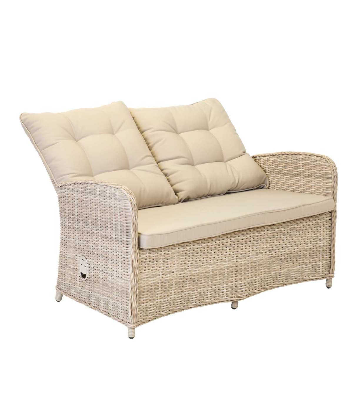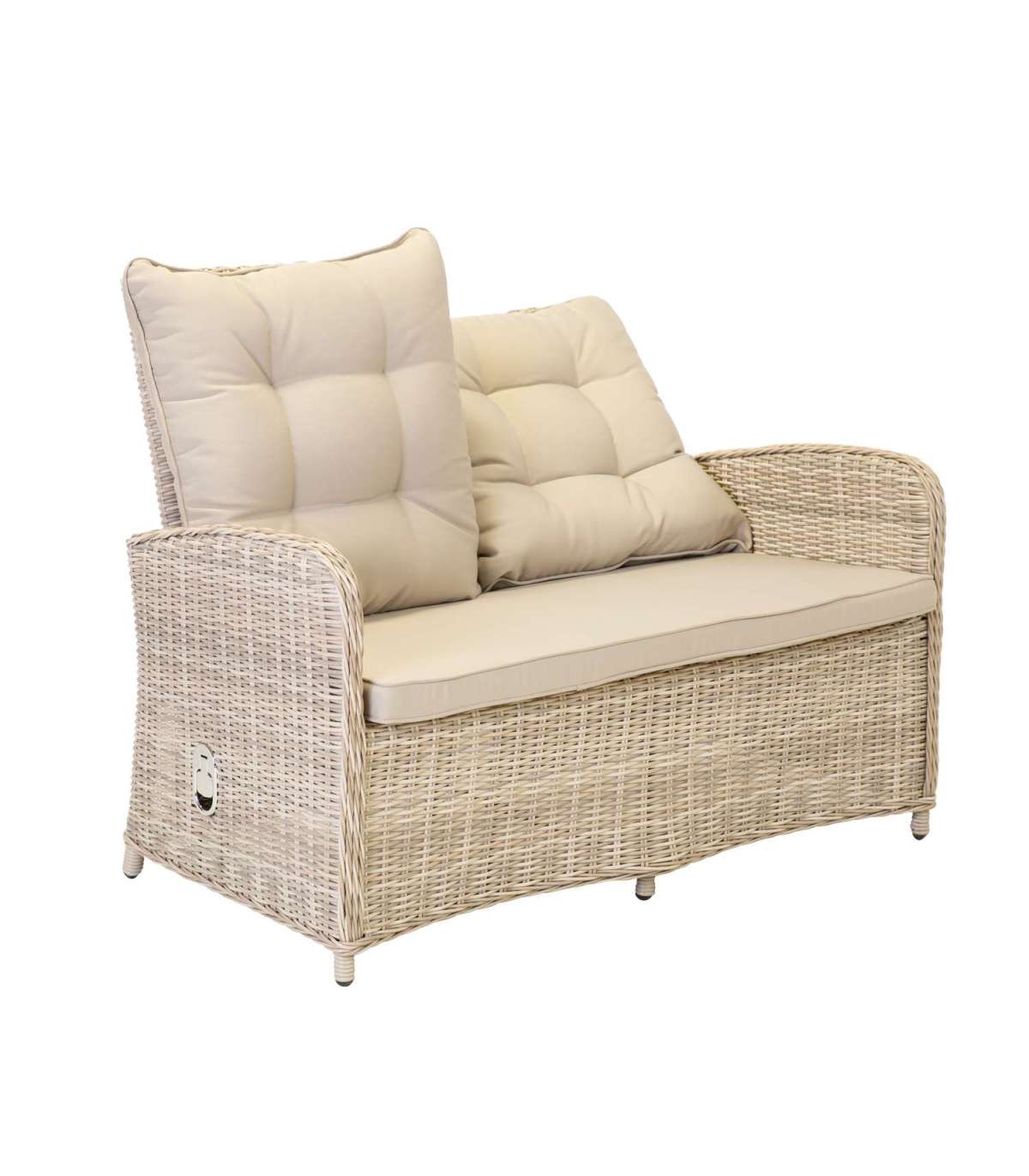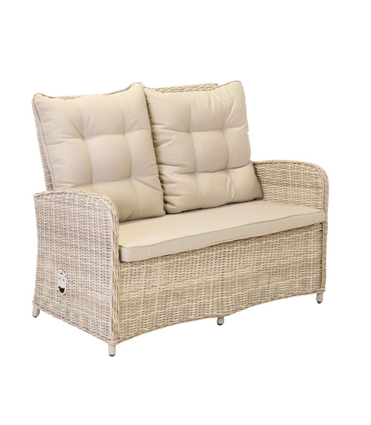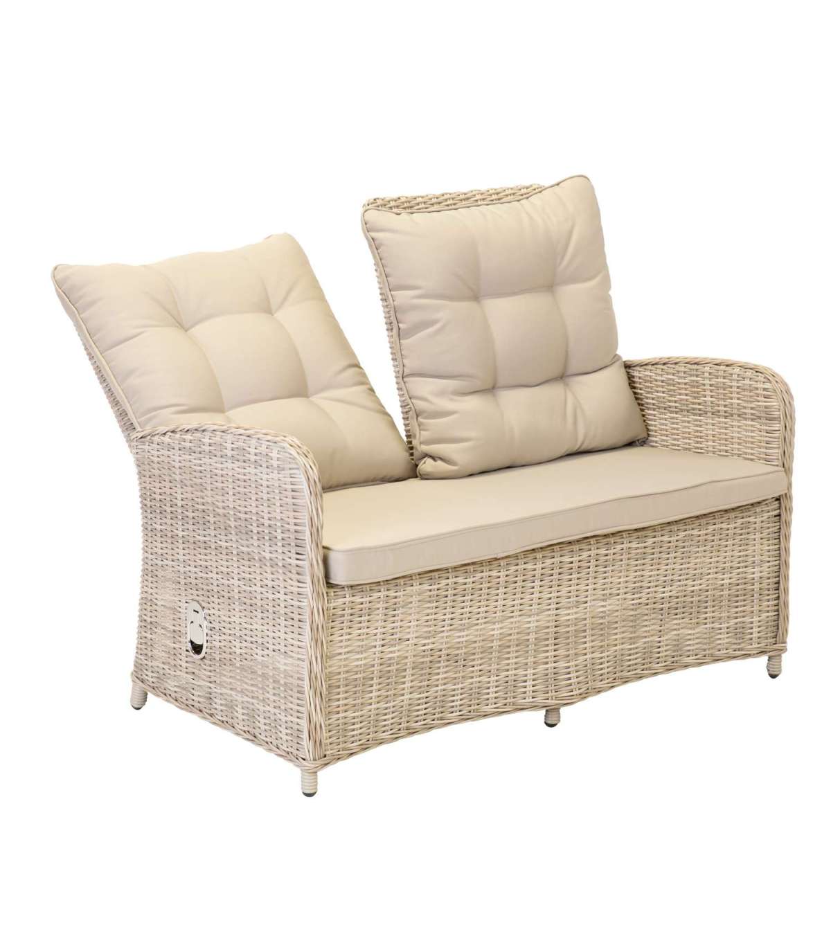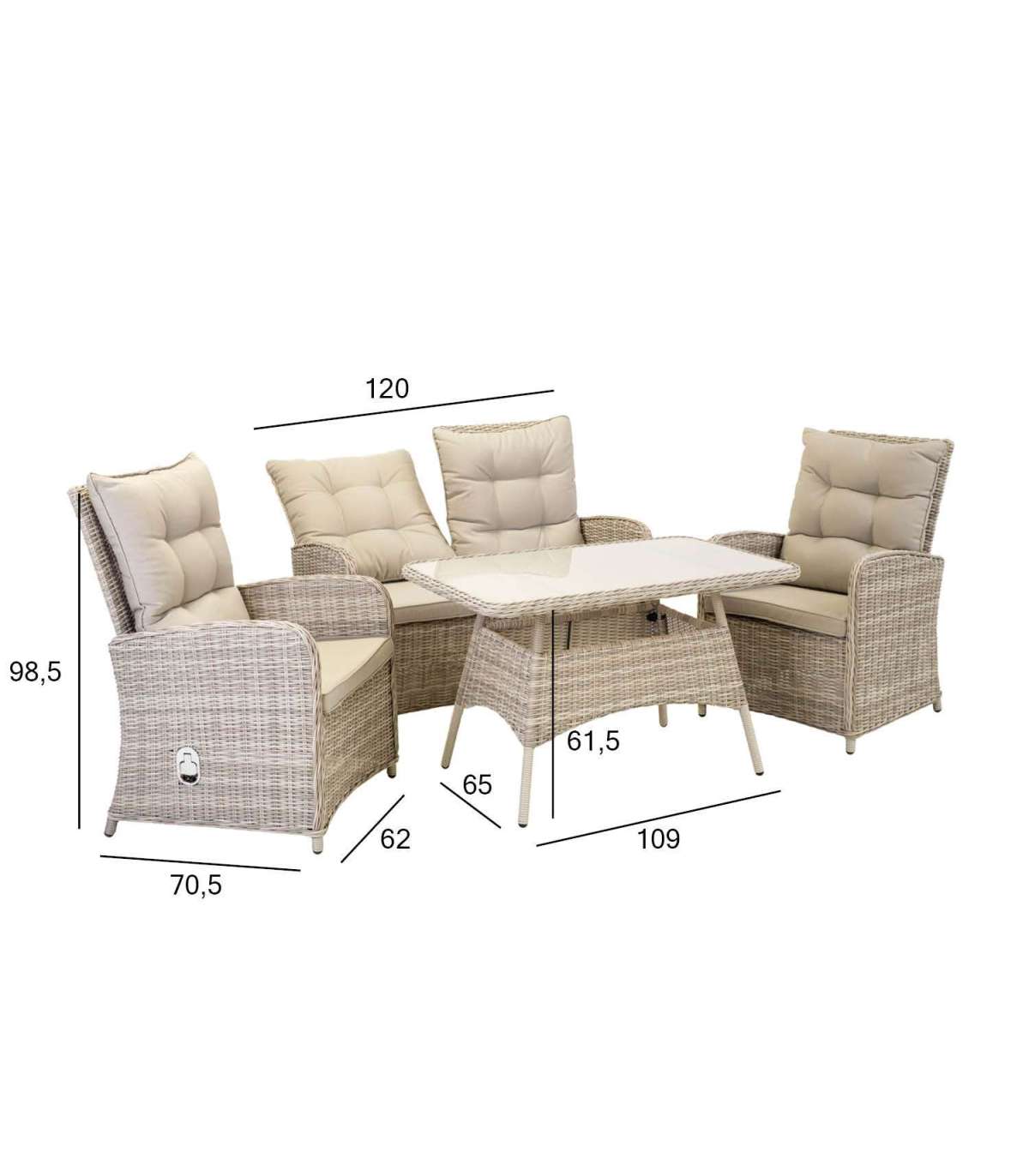 Каркасы всех частей набора изготовлены из алюминия и обтянуты пластиковым плетением. Размеры стола 109x65xH61,5см. Столешница: закаленное стекло толщиной 5 мм. Размеры дивана 120x70,5xH98,5см, а размеры кресла 62x70,5xH98,5см. Спинки кресел и дивана регулируются. Подушки включены. Чехлы на подушки изготовлены из полиэстера светло-серого цвета. Толщина подушек сиденья 6 см. Продукт долговечен в изменяющихся погодных условиях и очень прост в обслуживании. Только подушки нуждаются в защите от непогоды. Чтобы продлить срок службы уличной мебели, мы рекомендуем использовать чехлы для уличной мебели. ХРАНЕНИЕ: в конце летнего сезона мы рекомендуем хранить садовую мебель в помещении. Очистите и высушите мебель перед хранением. Для хранения используйте сухое и хорошо проветриваемое помещение.