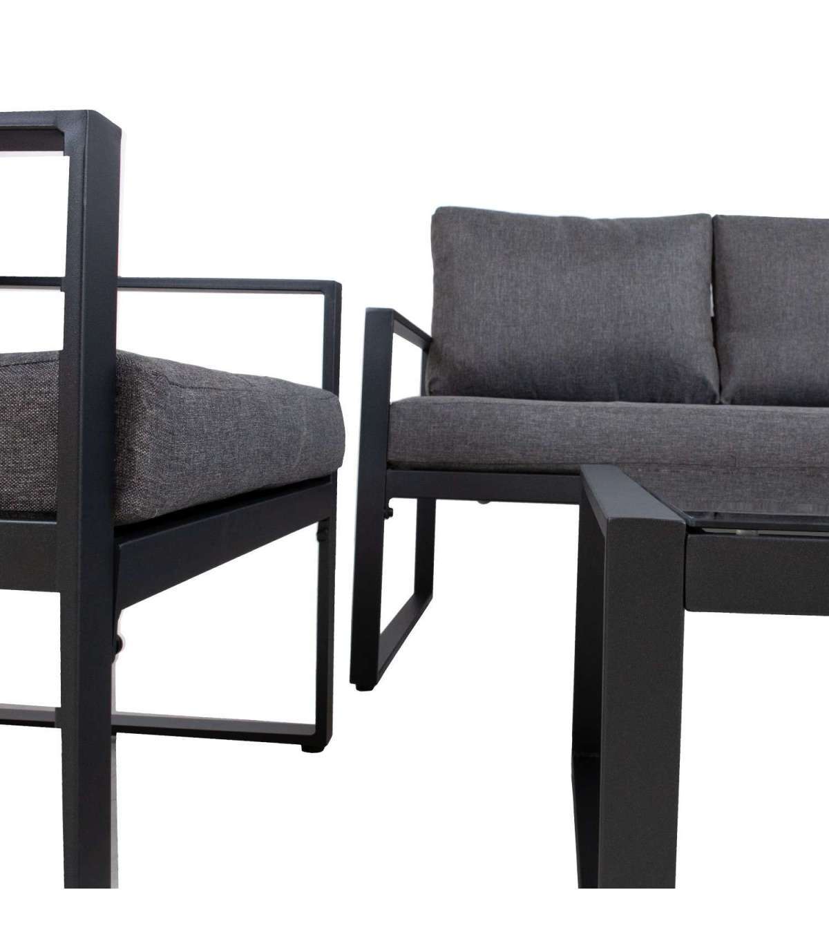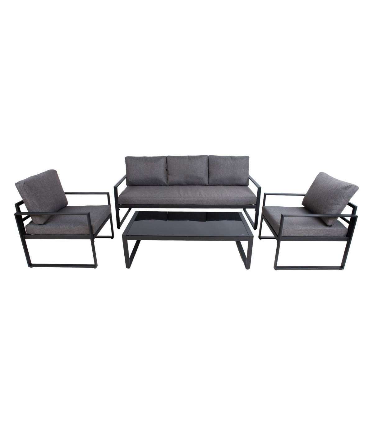 Комплект LEIPZIG: диван, 2 стула, стол. В комплект входит 3-х местный диван, два кресла и журнальный столик. Сиденья имеют подвесное дно. Подушки сиденья и спинки входят в комплект и покрыты полиэстером. Каркас изделия изготовлен из стали с порошковым покрытием. Журнальный столик покрыт печатным стеклом толщиной 5 мм. Размеры дивана 180x68xH65см, стула 65x68xH65см, стола 60x120xH35см.
