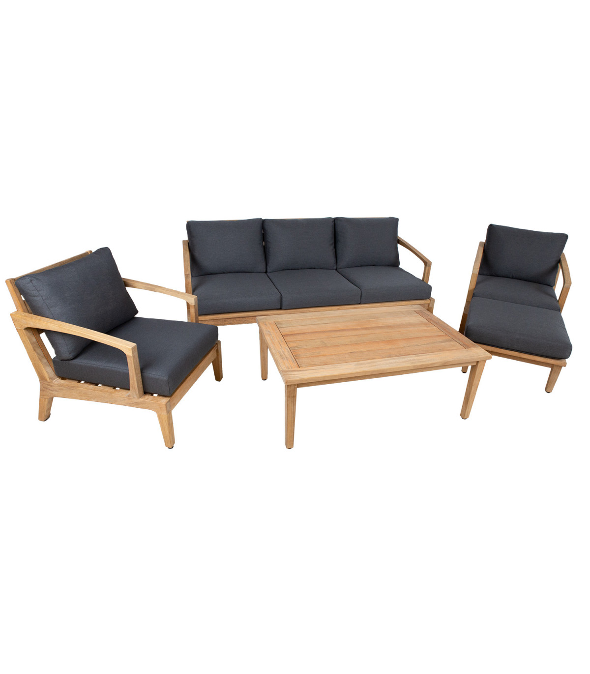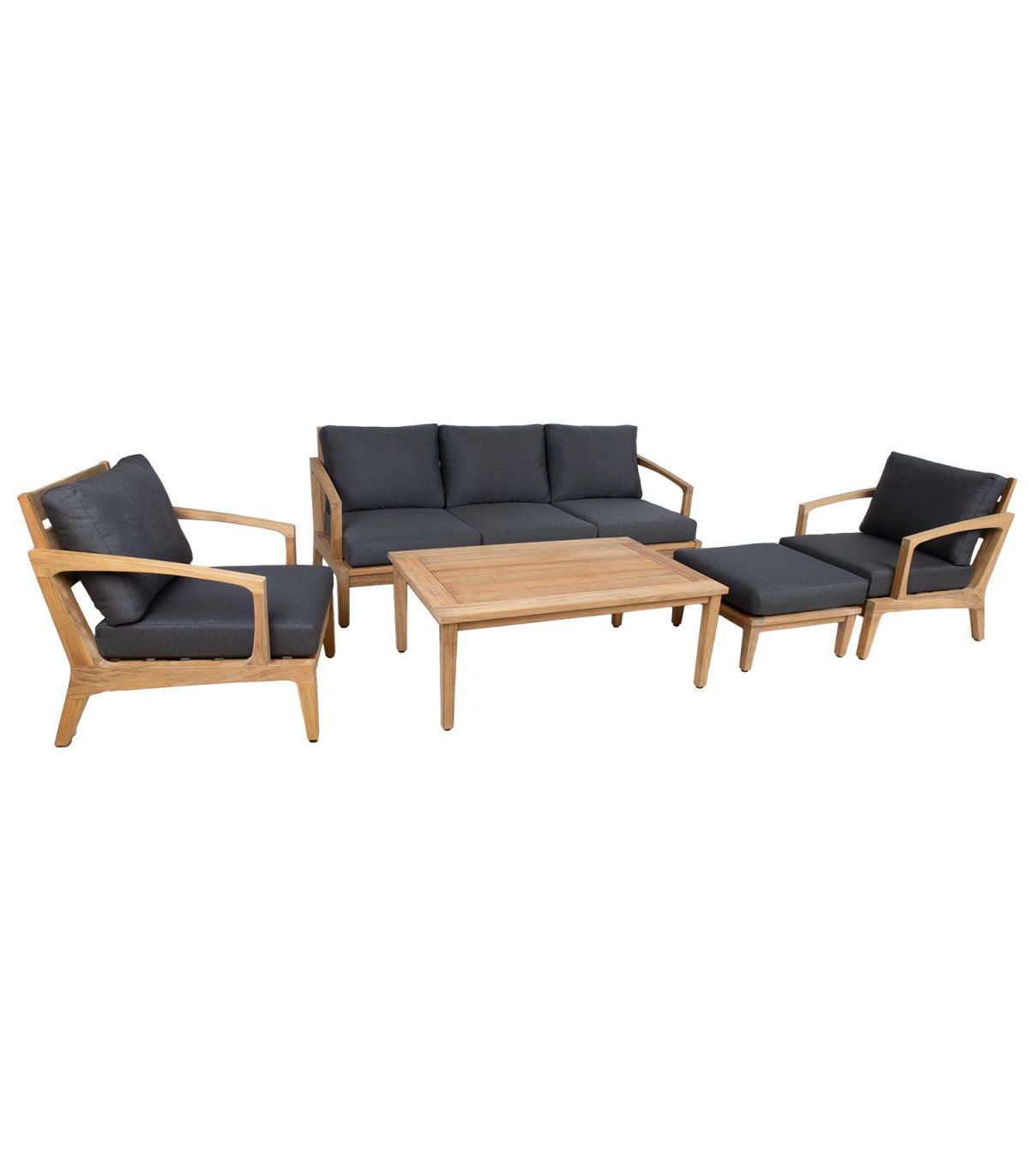 Комплект садовой мебели MALDIVE стол, диван, 2 стула и тахта. Размеры стола 120х80х45см. Размеры дивана 210x89xH86см, высота сиденья 30/43см. Размеры кресла 75x89xH86см, высота сиденья 30/43см. Размеры тахты 65x65xH27/40см. Стол и каркас, а также каркасы дивана и кресел изготовлены из тщательно отобранного зрелого тикового дерева. Мелко отполированная поверхность деревянных деталей полностью натуральна. Благодаря высокому содержанию натуральных масел тик очень устойчив к влаге и древесным вредителям и не требует дополнительной обработки. Тиковая древесина очень хорошо переносит различные погодные условия и сохраняет свой прекрасный внешний вид и лучшие свойства на долгие годы. Чем более зрелая древесина, тем выше ее плотность и маслосодержание, тем она долговечнее и устойчивее к погодным условиям. Под воздействием солнечных лучей и влаги поверхность древесины со временем приобретает красивый серебристо-серый цвет. Это изменение цвета является естественным и не влияет на качество древесины. Съемные мягкие подушки поставляются со всеми сиденьями. Наволочки изготовлены из коричневой полиэфирной ткани. УХОД: регулярно чистите мебель, защищайте ее от чрезмерной влажности и УФ-излучения. Чтобы освежить деревянные поверхности, при желании их можно слегка отшлифовать. Чтобы продлить срок службы садовой мебели, мы рекомендуем использовать чехлы для садовой мебели. ХРАНЕНИЕ: в конце летнего сезона мы рекомендуем хранить садовую мебель в помещении. Очистите и высушите мебель перед хранением. Для хранения используйте прохладное, сухое, хорошо проветриваемое помещение.