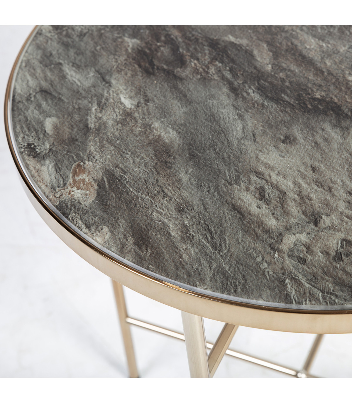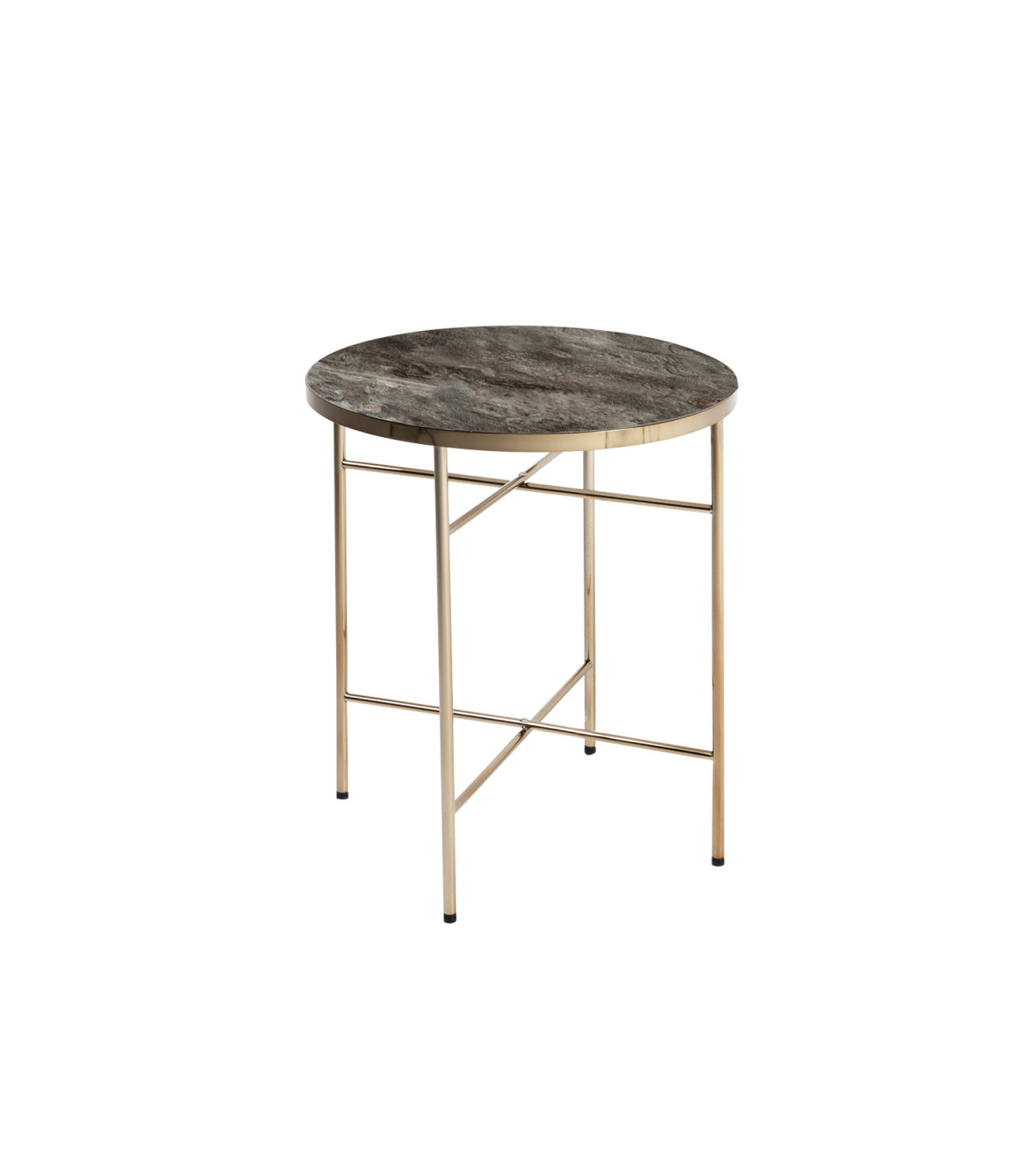 Столик вспомогательный ASTORIA D42,5xH51см, столешница: мраморное стекло, стальные ножки и рама, цвет: шампанского.