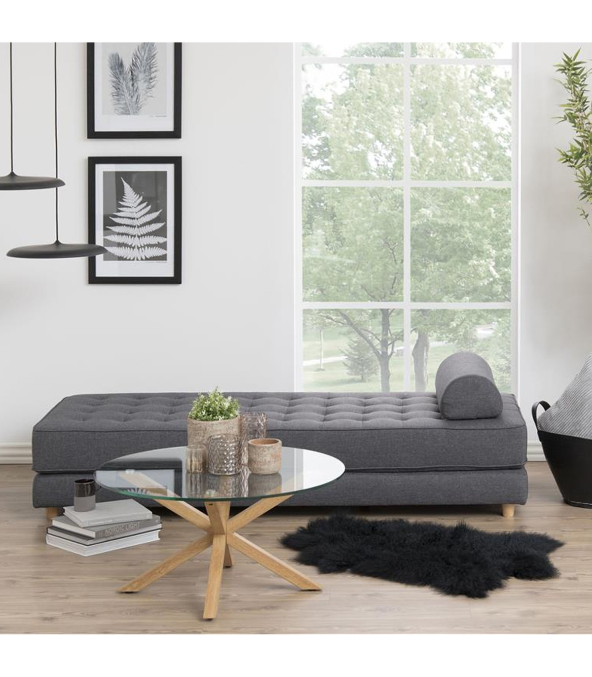 Придиванный столик HEAVEN D82xH40см, столешница: 10мм прозрачное стекло, ножки: металл, цвет: дуб