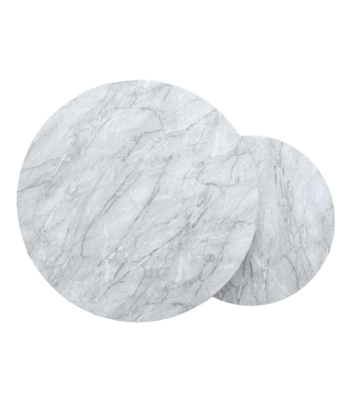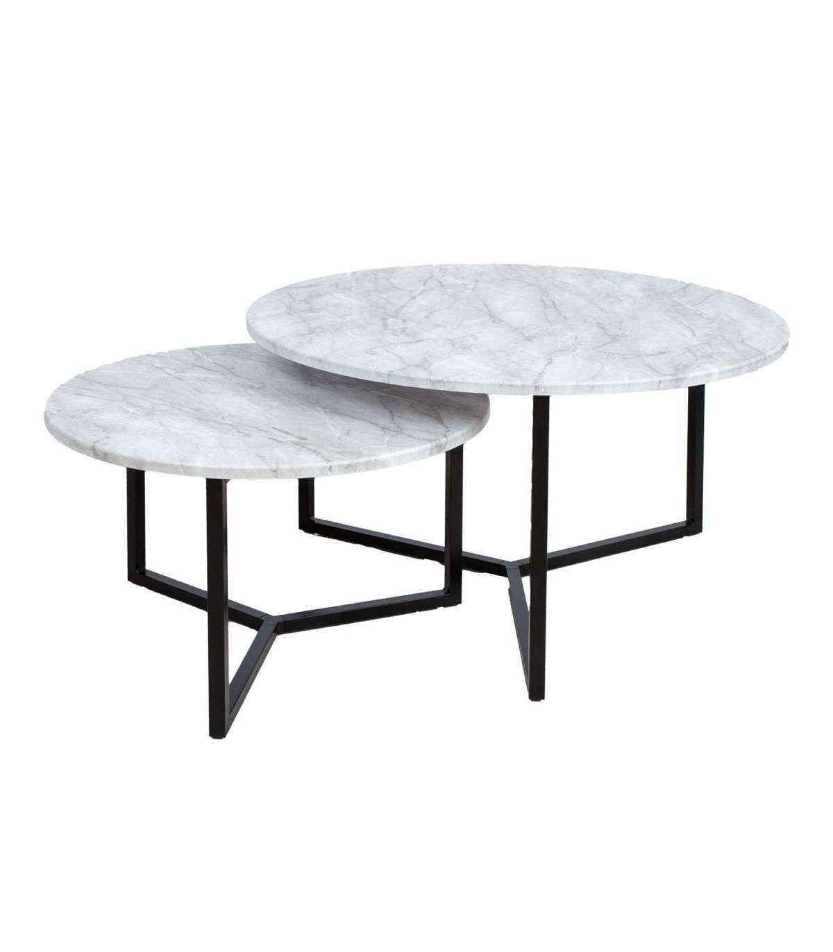 Diivanilaud AKIRA 2tk D80xH45cm, D60xH37cm, helehall. Lauaplaat: marmori dekooriga laminaatplaat. Laua jalad ja alusraam on valmistatud terasest ja viimistletud musta pulbervärviga.