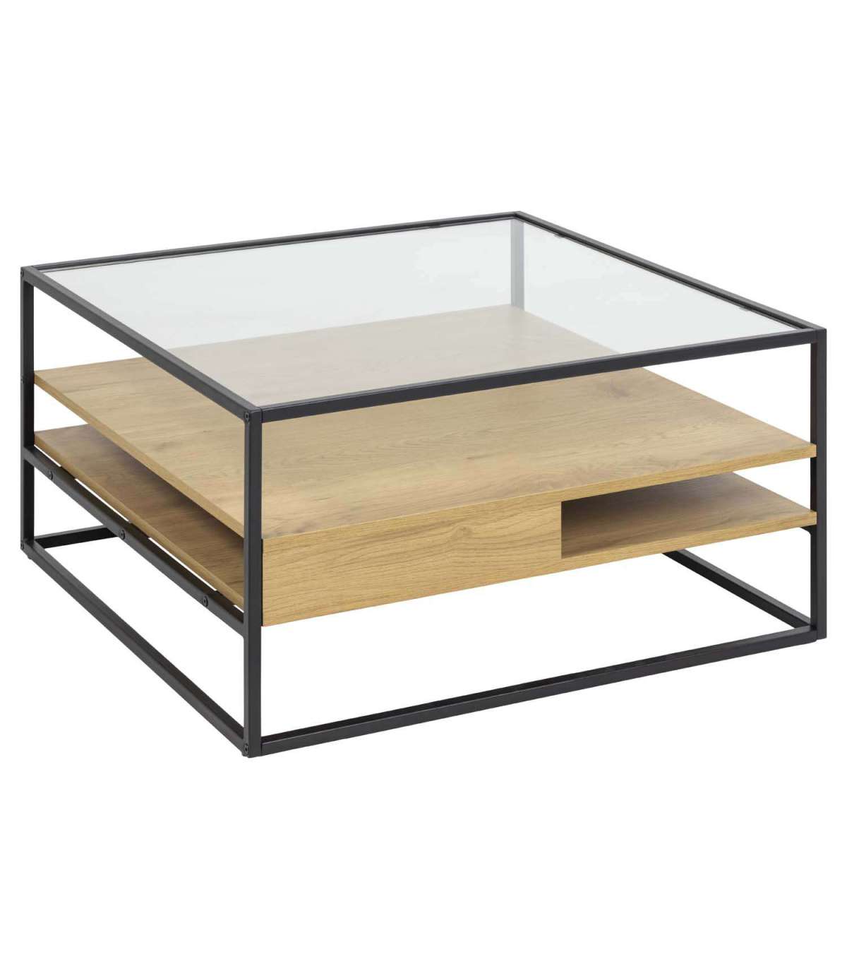 Kuubikujulise metallraamiga diivanilaud sobib suurepäraselt igasse kaasaegsesse koju. Läbipaistev klaas annab sellele kerge ilme. Kaks metsiku tamme välimusega riiulit on stiilseks panipaigaks. Mõõdud on 80x80xH40cm. HOOLDUS: Hoidke klaaspind puhas, et vältida kriimustusi. Pihustage klaasipuhastusvahendit ja pühkige mikrokiudlapi või paberrätikuga. Pinnakahjustuste vältimiseks kasutage lauamatte ja klaasialuseid. Alus: Kasutage igapäevaseks puhastamiseks seebiveest kuivaks väänatud lappi. Rooste vältimiseks pühkige pind kuivaks. Ärge hõõruge pinda kõvade esemetega.