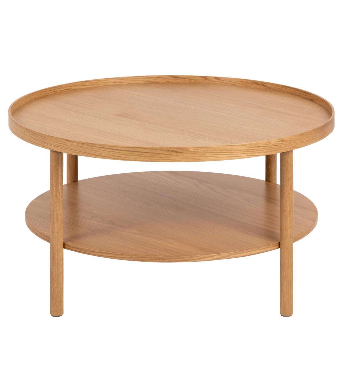 Riiuliga diivanilaud toob elutuppa soojust ja hubasust. Kõrgendatud servaga ümmargune ülaosa loob ideaalse pinna väiksemate esemete eksponeerimiseks. Tänu alumisele riiulile saab kõik ajakirjad käeulatuses hoida. Maitsekas diivanilaud lisab elutuppa stiili. Lauaplaat on valmistatud lakitud tammespoonist. Alus on valmistatud lakitud tammest. Mõõdud D80xH42cm.