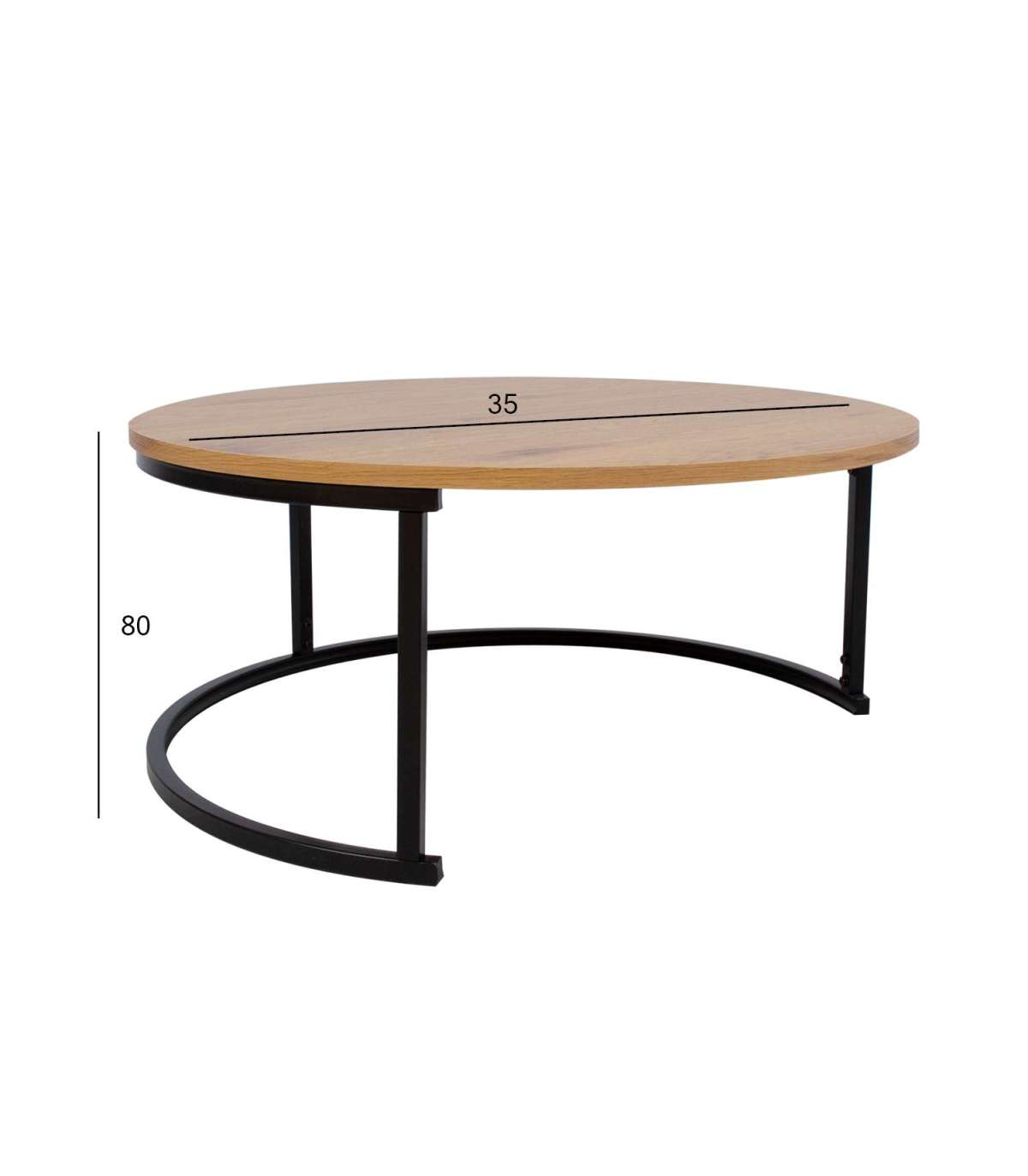 Журнальный столик BRITU Д80xB35см, светлое дерево. Столешница: 18мм МДФ с декором из светлого дерева. Ножки из металла, покрытого черной порошковой краской.