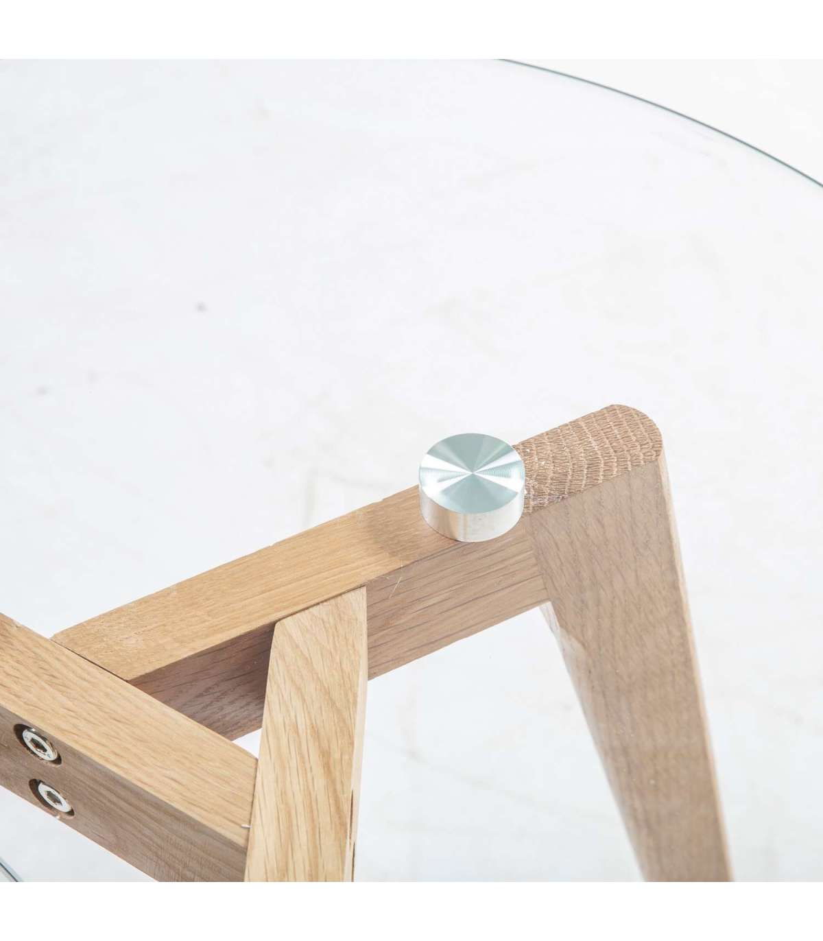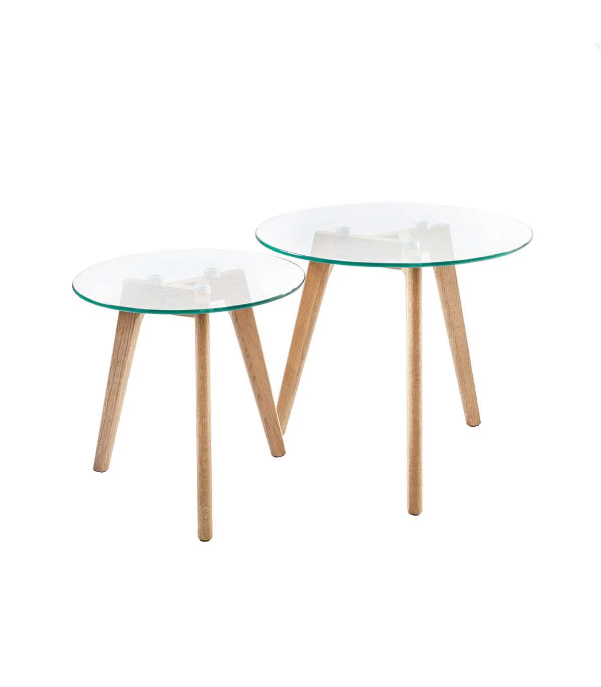 Приставные столики HELENA 2шт. в наборе D50xH45см, D40xH40см. Столешница: прозрачное стекло толщиной 8 мм. Дубовые ножки.