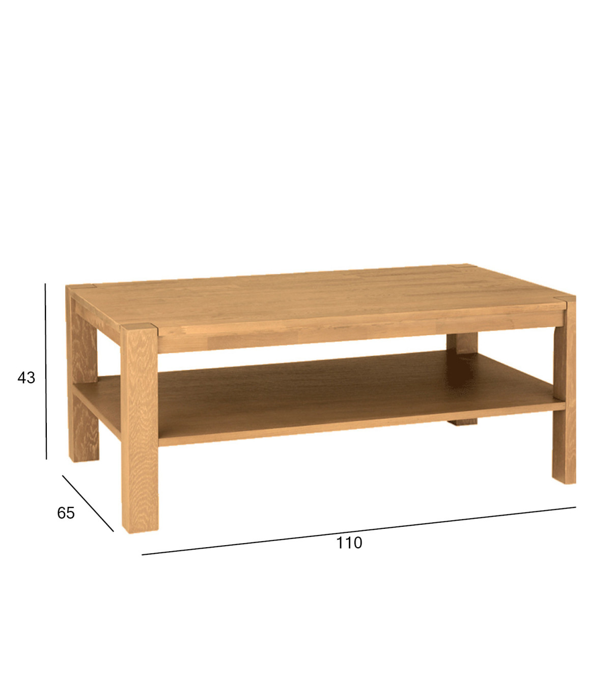 Diivanilaud CHICAGO NEW, 110x65xH43cm. Pealmine lauaplaat: MDF kaetud naturaalse tammespooniga, alumine riiul: tamme vineerist.