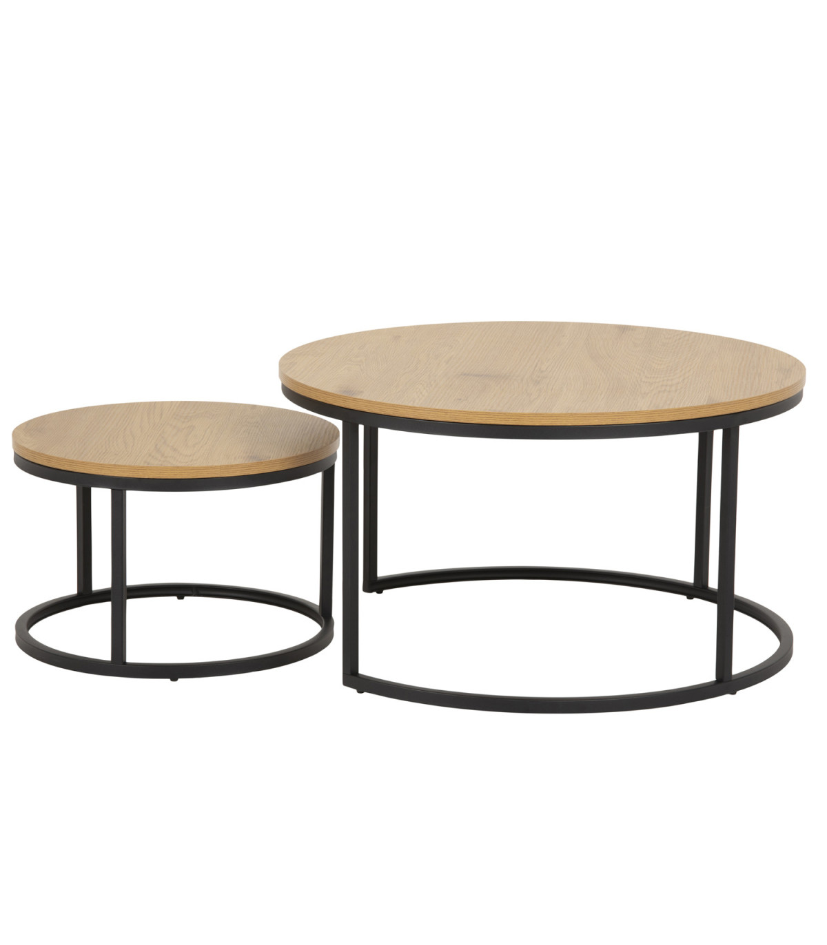 Журнальные столики SPIRO 2шт, D80xH45см/ D50xH33см, дуб. Столешница: меламин, дикий дуб, основание: металл, порошковое покрытие, черный матовый
