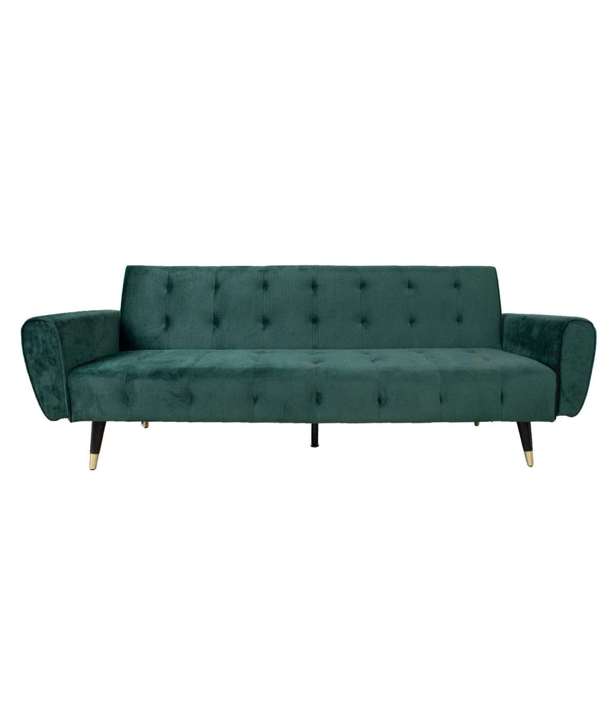 Диван-кровать FALUN, зеленый бархат. Материал покрытия: 100% полиэстер. Каркас: дерево, фанера, МДФ, зигзагообразные пружины. В обивке дивана использован переработанный поролон. Диван имеет механизм «клик-клак», который позволяет легко раскладывать его и использовать в качестве спального места. Габаритные размеры дивана 214x83xH82см. Глубина сиденья 54 см. Размеры дивана-кровати в раскрытом состоянии 190х106х40см.