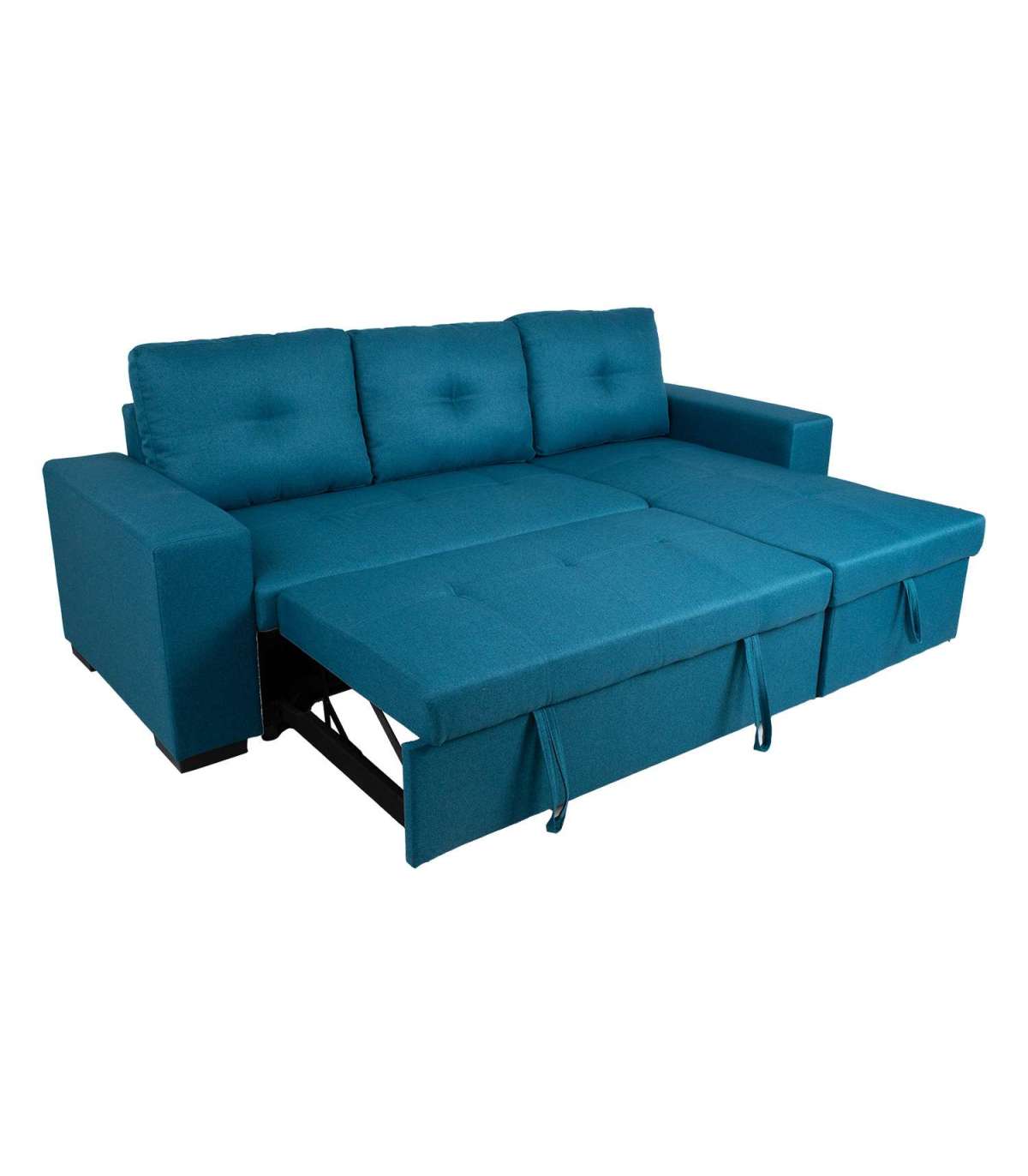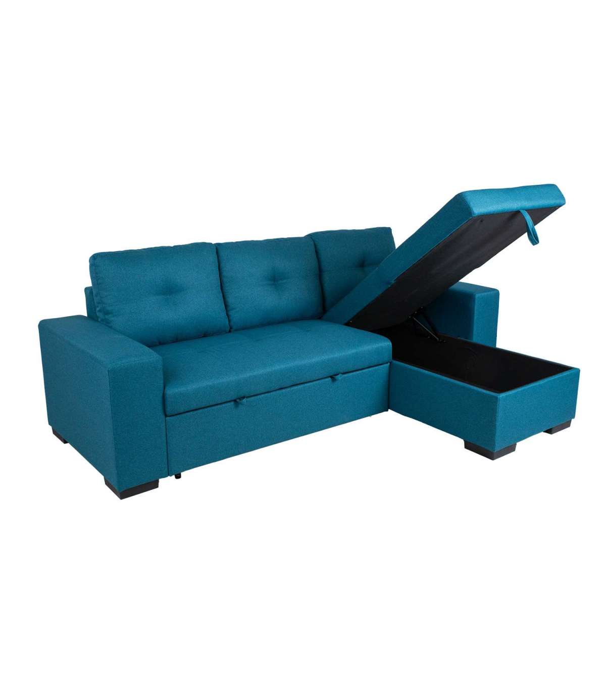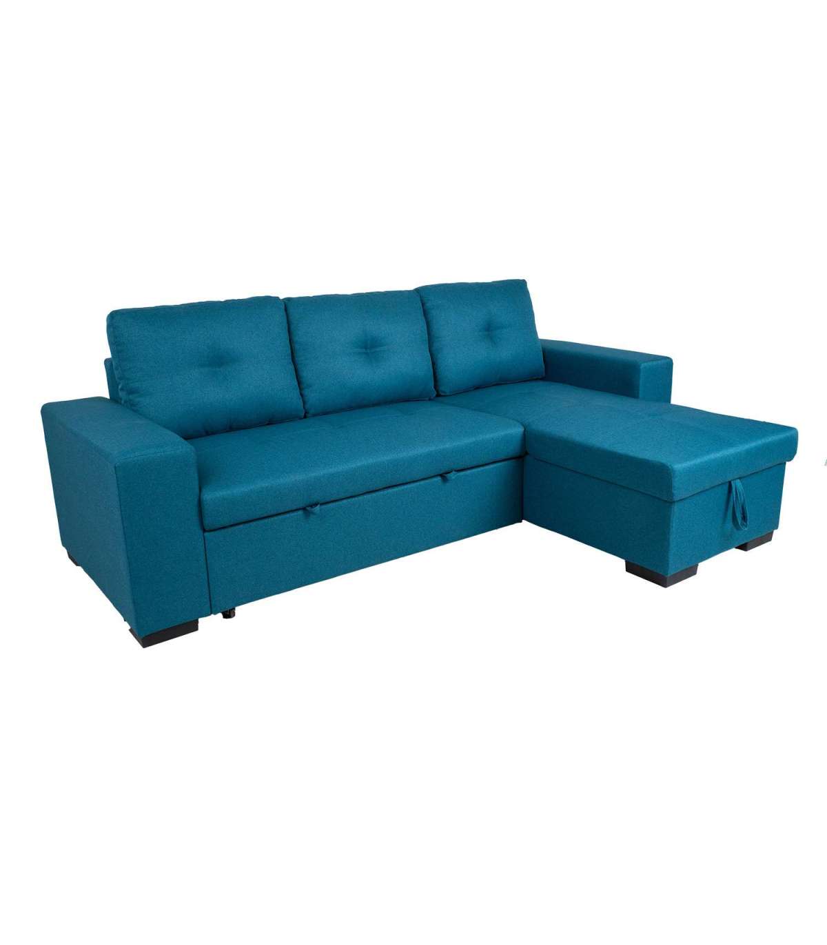 Nurgadiivanvoodi CARITA meresinine. Diivani karkass on valmistatud puidust ja vineerist. Istme sees on pocket-vedruplokk ja kvaliteetsest poroloonist (PU 25-28 kg/m³) polsterdus. Lahtised seljatoepadjad on täidetud polüesterkiuga. Diivan on kaetud polüesterkangaga. Diivani nurgaosa all on mahukas pesukast. Diivan on lahtikäiv ning vajadusel saab seda kasutada voodina. Avamiseks tõmmake istme alla paigutatud pikendusosa ette välja ja tõstke istmega samale tasapinnale. Diivanvoodi on mõeldud kasutamiseks pigem külalisvoodina, kui igapäevase magamisasemena. Kasutage alati kattemadratsit. Diivani nurk on universaalne ja selle saab tõsta vasakule või paremale. Diivani üldmõõdud on 240x90/160xH94cm. Istme sügavus 58/126cm, istme laius 195cm, istme kõrgus 45cm. Käetoe laius 23cm, käetoe kõrgus maast on 60cm. Magaimsosa mõõdud avatuna 130x195cm.