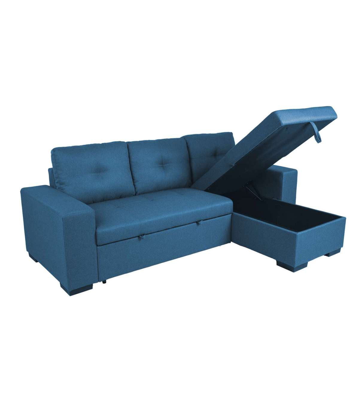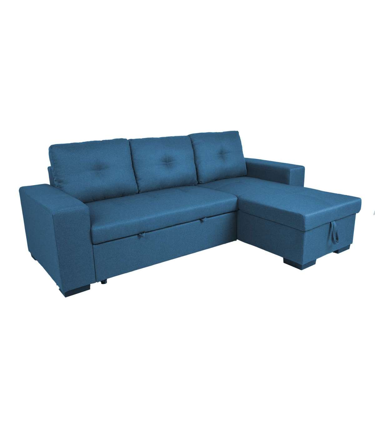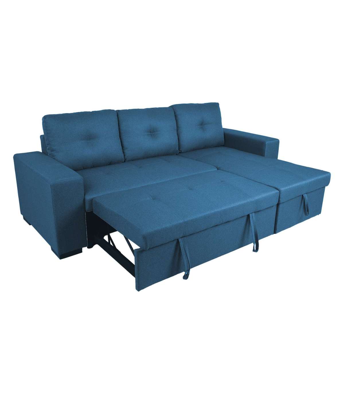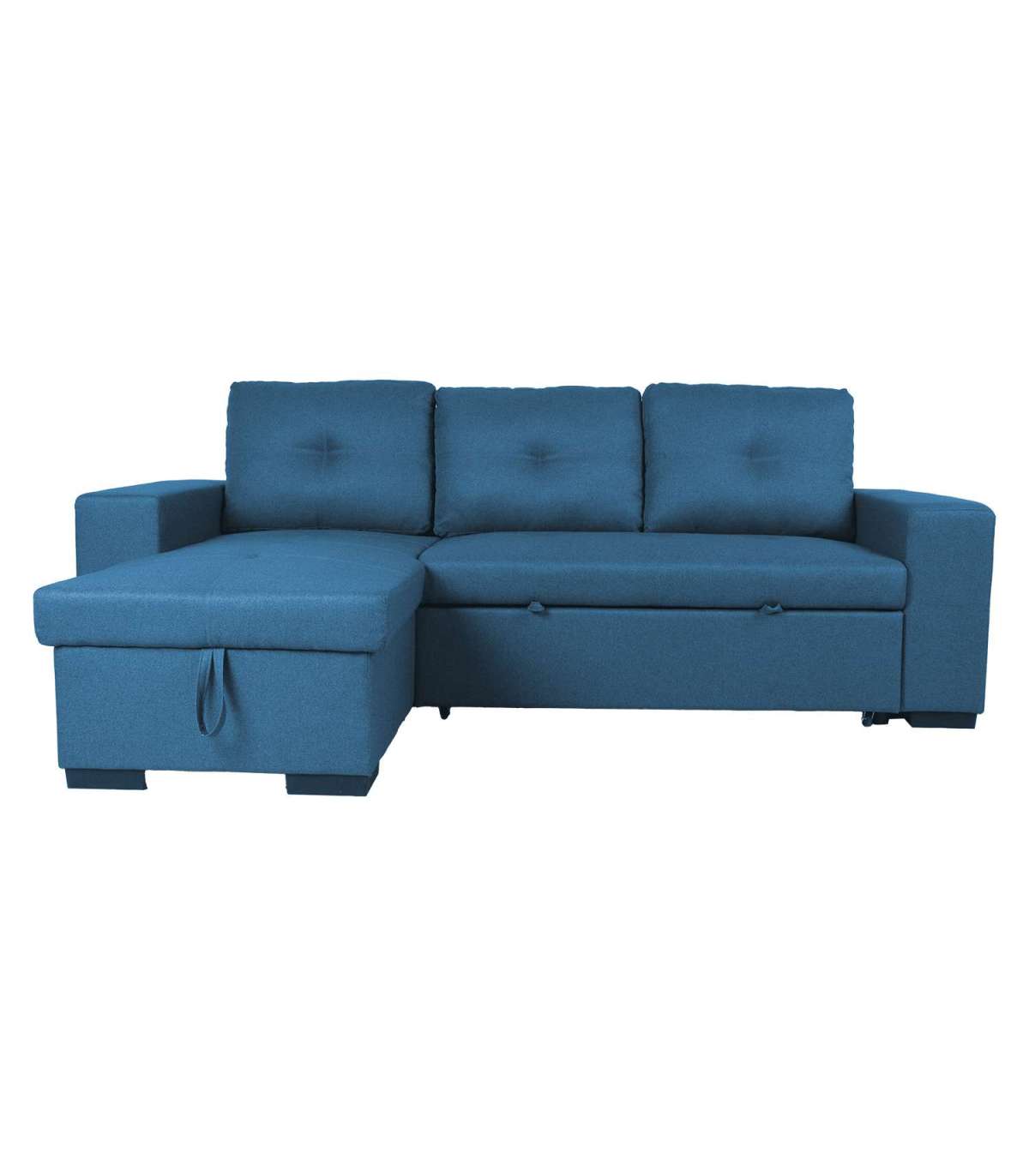 Nurgadiivanvoodi CARITA tumesinine. Diivani karkass on valmistatud puidust ja vineerist. Istme sees on pocket-vedruplokk ja kvaliteetsest poroloonist (PU 25-28 kg/m³) polsterdus. Lahtised seljatoepadjad on täidetud polüesterkiuga. Diivan on kaetud polüesterkangaga. Diivani nurgaosa all on mahukas pesukast. Diivan on lahtikäiv ning vajadusel saab seda kasutada voodina. Avamiseks tõmmake istme alla paigutatud pikendusosa ette välja ja tõstke istmega samale tasapinnale. Diivanvoodi on mõeldud kasutamiseks pigem külalisvoodina, kui igapäevase magamisasemena. Kasutage alati kattemadratsit. Diivani nurk on universaalne ja selle saab tõsta vasakule või paremale. Diivani üldmõõdud on 240x90/160xH94cm. Istme sügavus 58/126cm, istme laius 195cm, istme kõrgus 45cm. Käetoe laius 23cm, käetoe kõrgus maast on 60cm. Magaimsosa mõõdud avatuna 130x195cm.