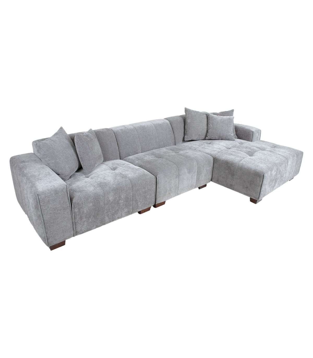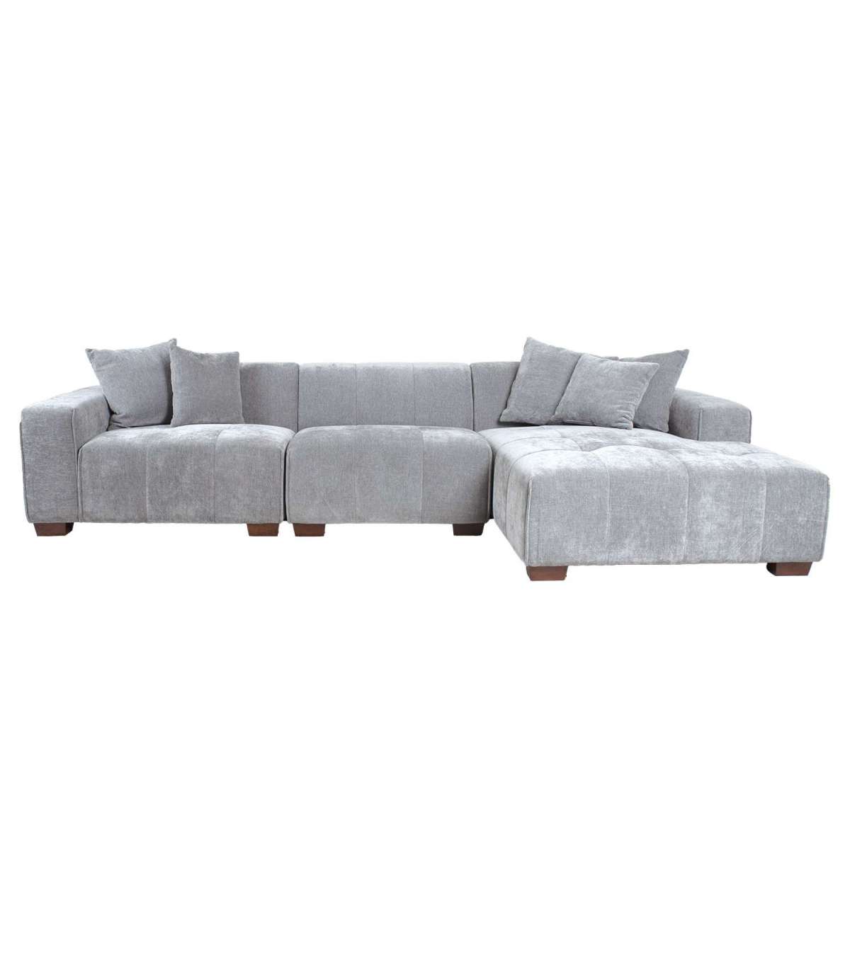 Nurgadiivan DAHLIA parem nurk, helehall. Trendikas, minimalistliku stiiliga nurgadiivan sobitub suurepäraselt modernsesse interjööri. Diivani karkass on valmistatud männipuust. Polsterduseks on kasutatud kvaliteetset polüuretaanvahtu. Istmepõhjale annavad vajaliku toe ja elastsuse kvaliteetsed terasest sik-sak vedrud. Diivan on üleni kaetud sametise pehme kangaga. Kattematerjal: 79% polüester, 21% viskoos. Diivani üldmõõdud on 322x96/162xH74cm. Istme laius 270cm, istme sügavus 64cm, istme kõrgus 45cm. Käetoe kõrgus maast 62cm, käetoe laius 26cm. Diivanil on tumedad puidust jalad H7cm. Komplekti kuulub 3+2 diivanipatja mõõtudega 55x55cm ja 42x42cm.