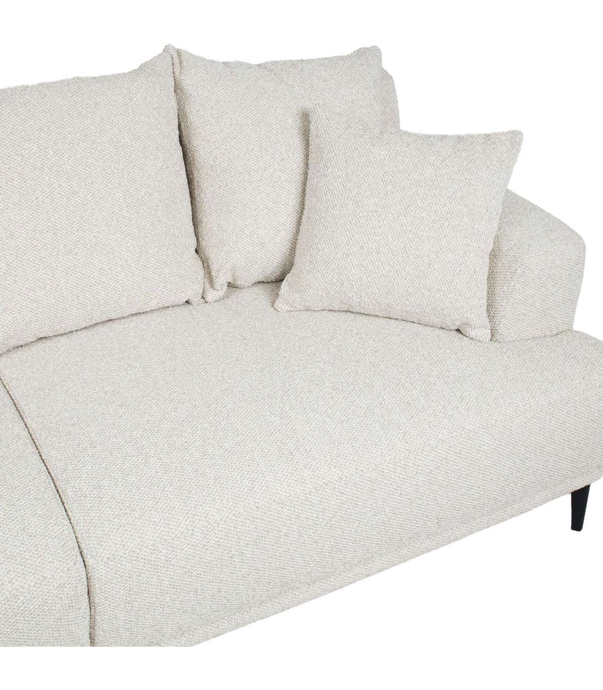 Luksuslik, efektse kangaga kaetud hele diivan on tõeline pilgupüüdja. Lahtised seljatoepadjad mõjuvad kutsuvalt ja pakuvad suurepärast mugavust.