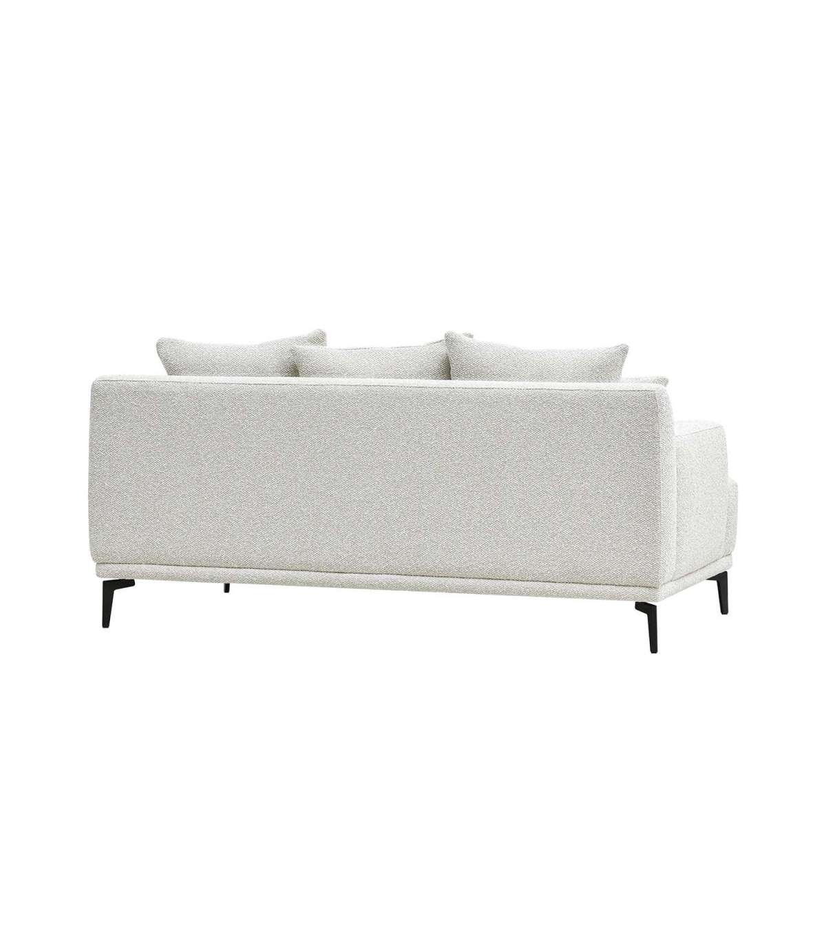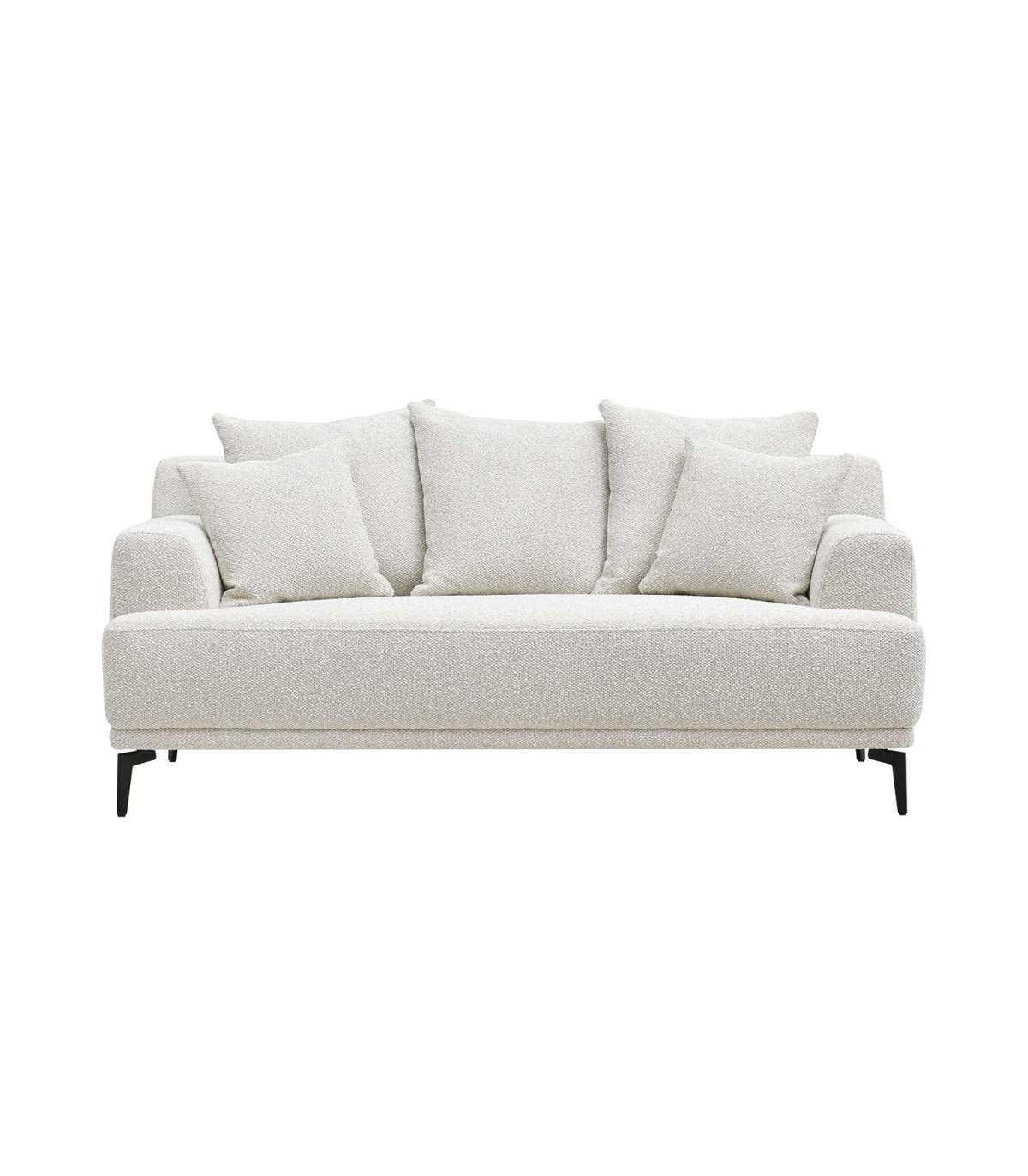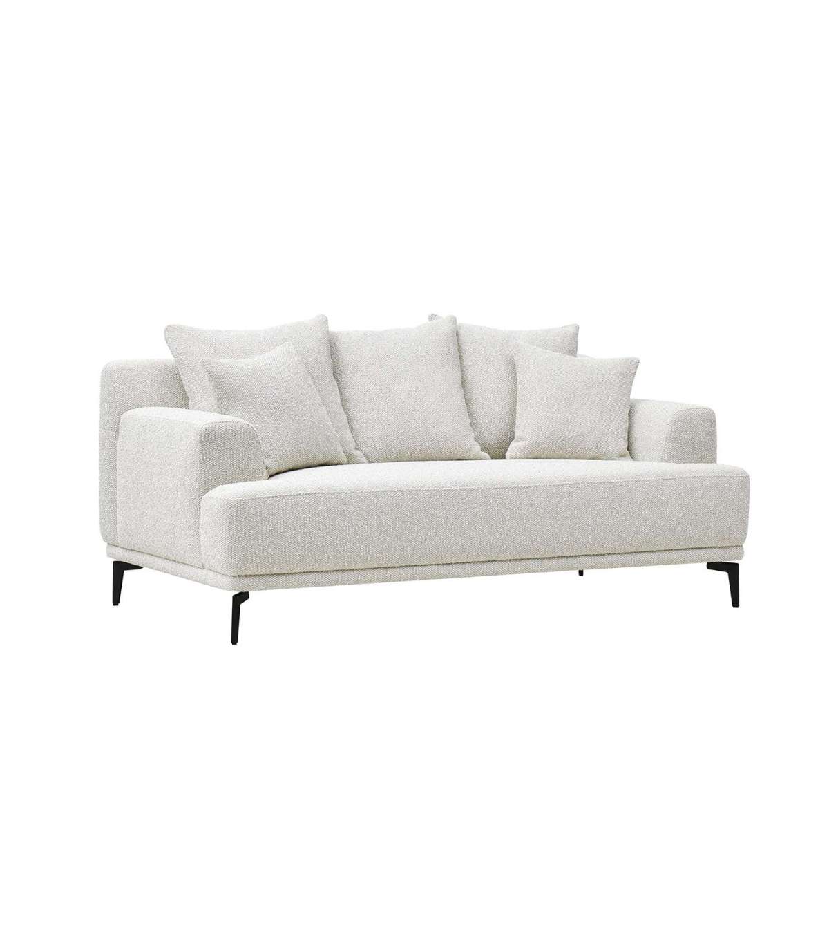 Luksuslik, efektse kangaga kaetud hele diivan on tõeline pilgupüüdja. Lahtised seljatoepadjad mõjuvad kutsuvalt ja pakuvad suurepärast mugavust.