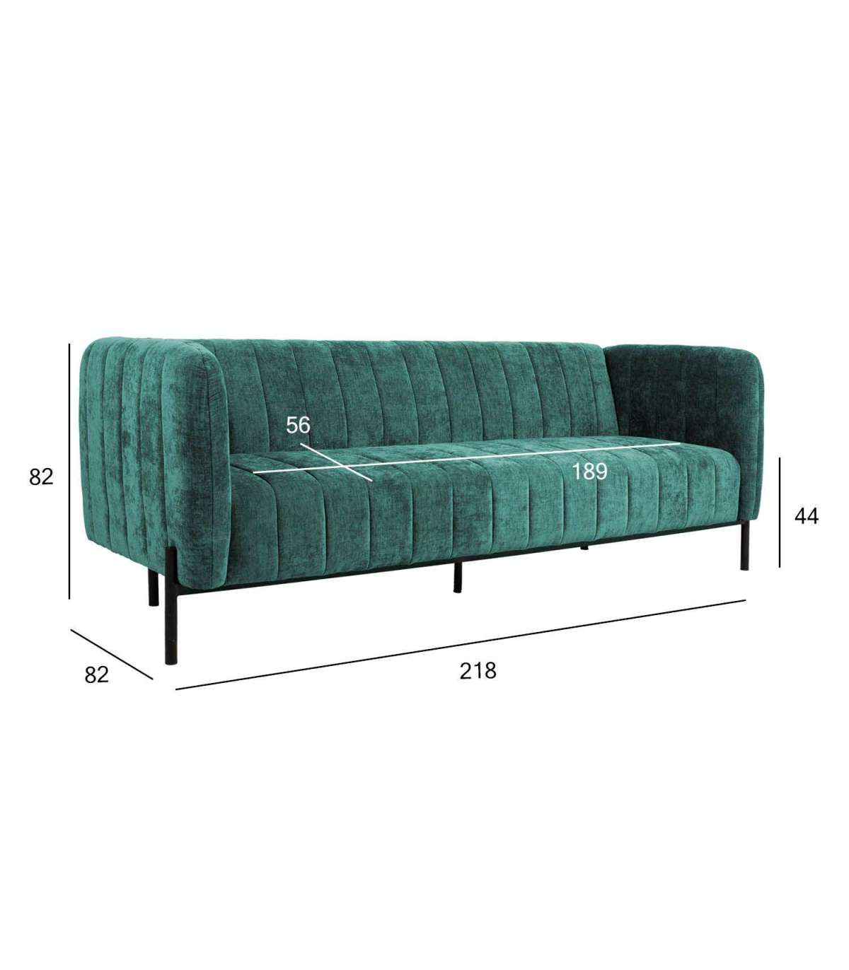 Diivani üldmõõdud on 218x82xH82cm. Istme laius 189cm, istme sügavus 56cm, istme kõrgus 44cm. Käetoe kõrgus maast 82cm.