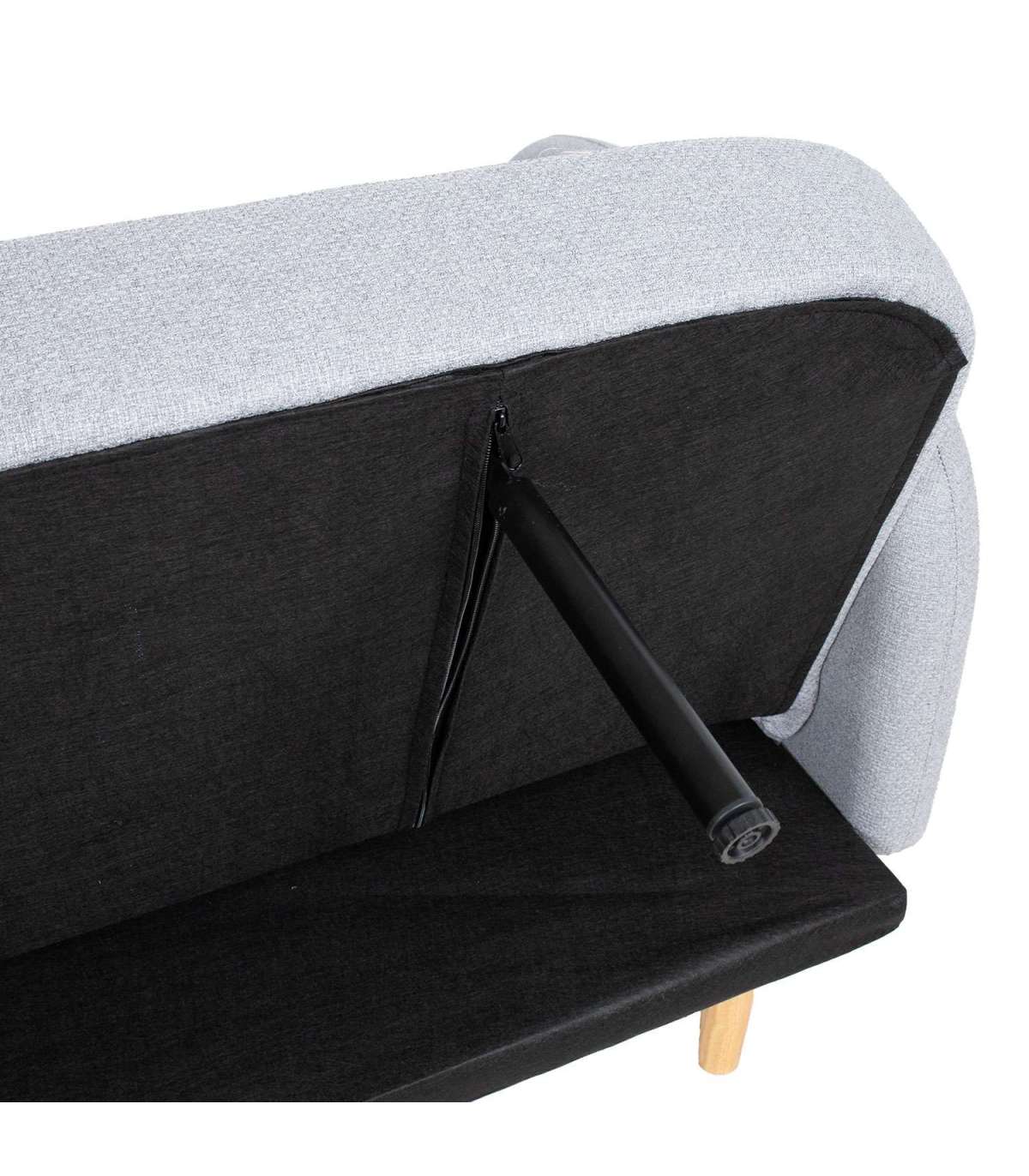 Diivanvoodi KARIN 208x80x80cm, hall. Diivani kattematerjal: 100% polüesterkangas. Karkass ja vedrustus: puit, vineer, MDF, siksak vedrustus. Diivani polstris on kasutatud taaskasutatud porolooni. Diivanil on click-clack mehhanism, mille abil on lihtne muuta diivan magamisasemeks. Diivani üldmõõdud on 208x80xH80cm. Diivanvoodi mõõdud avatuna on 187x105xH41cm. Diivanil on heledad puidust jalad.