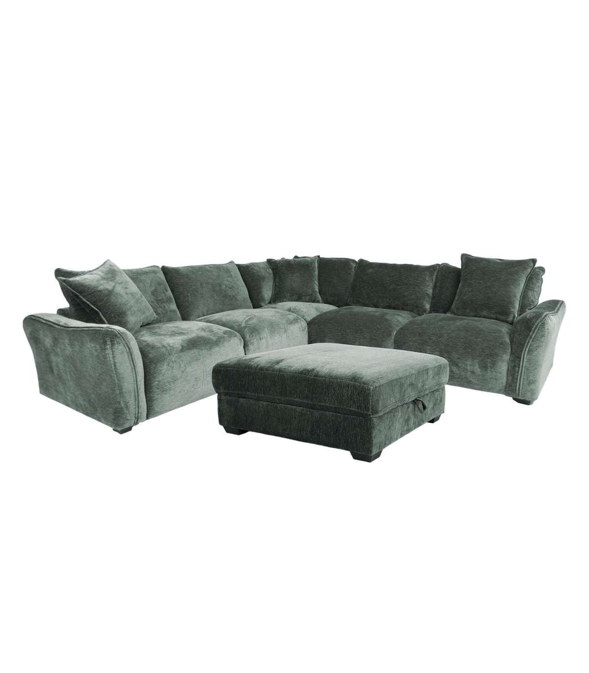 Luksusliku sametise kangaga kaetud pehme ja mahukas nurgadiivan on tõeline pilgupüüdja igas elutoas. Diivani juurde kuulub funktsionaalne panipaigaga tumba.