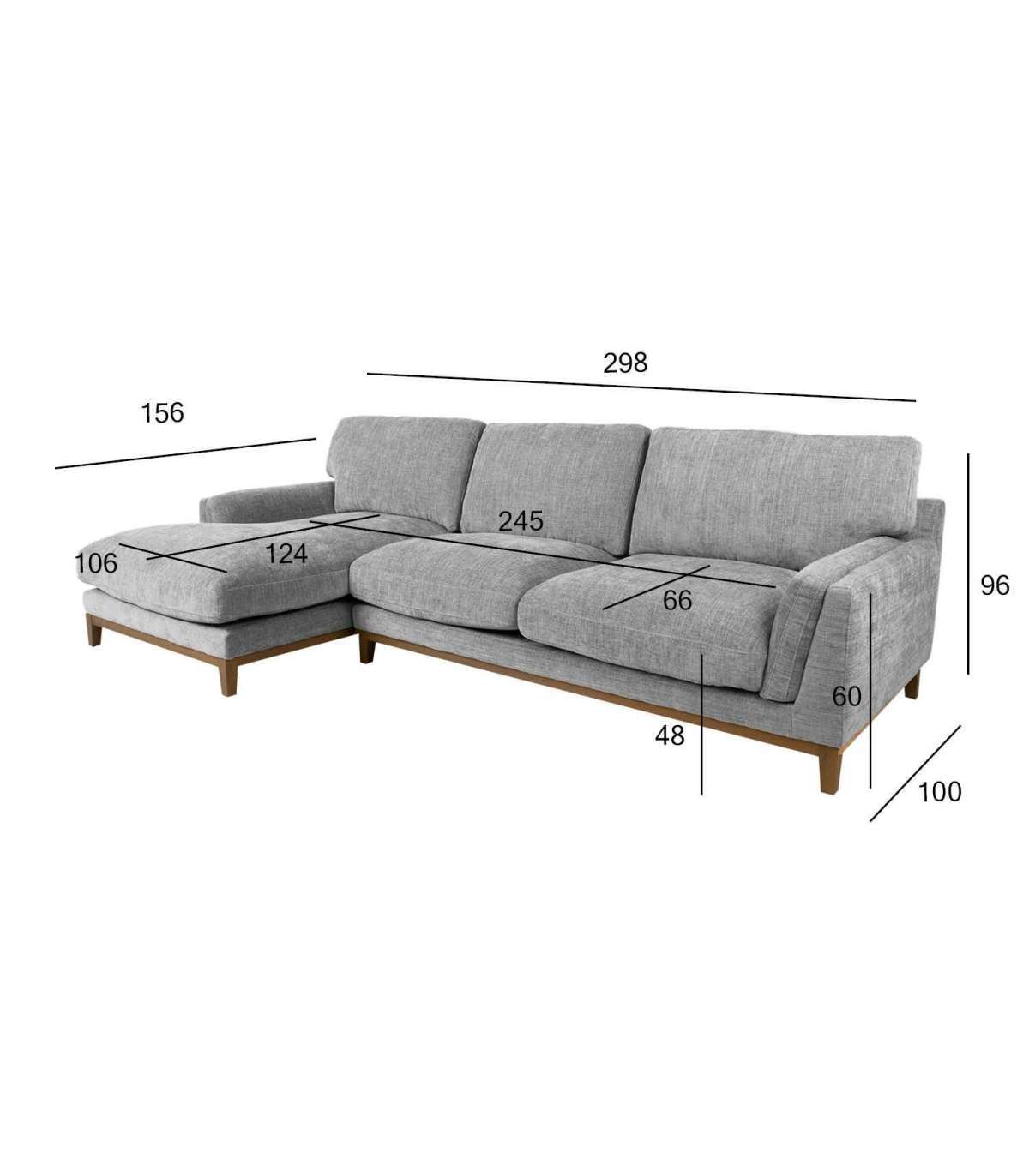 Nurgadiivan BASIL vasak nurk, hall. Diivani karkass on valmistatud puidust ja vineerist. Istmepõhi on toestatud sik-sak vedrudega. Lahtiste istmepatjade sees on poroloonplaat 30kg/m³, mis on kaetud paksu polüesterkiu kihiga. Lahtised seljatoepadjad on täidetud polüesterkiuga. Kattematerjal on polüesterkangas, Martindale väärtus 90 000. Diivani üldmõõdud on 298x156/100xH96cm. Istme laius 80+165cm, istme sügavus 124/66cm, istme kõrgus 48cm. Käetoe kõrgus maast 60cm, käetoe laius 20cm. Diivanil on puidust alusraam ja jalad H10cm.