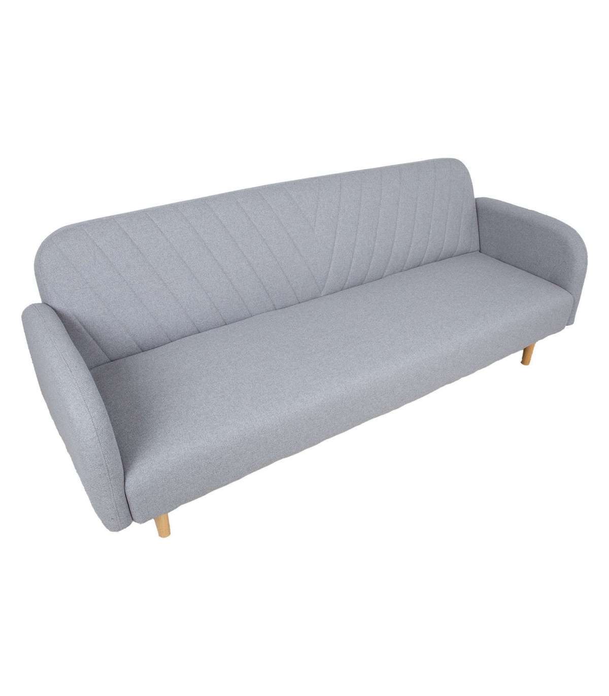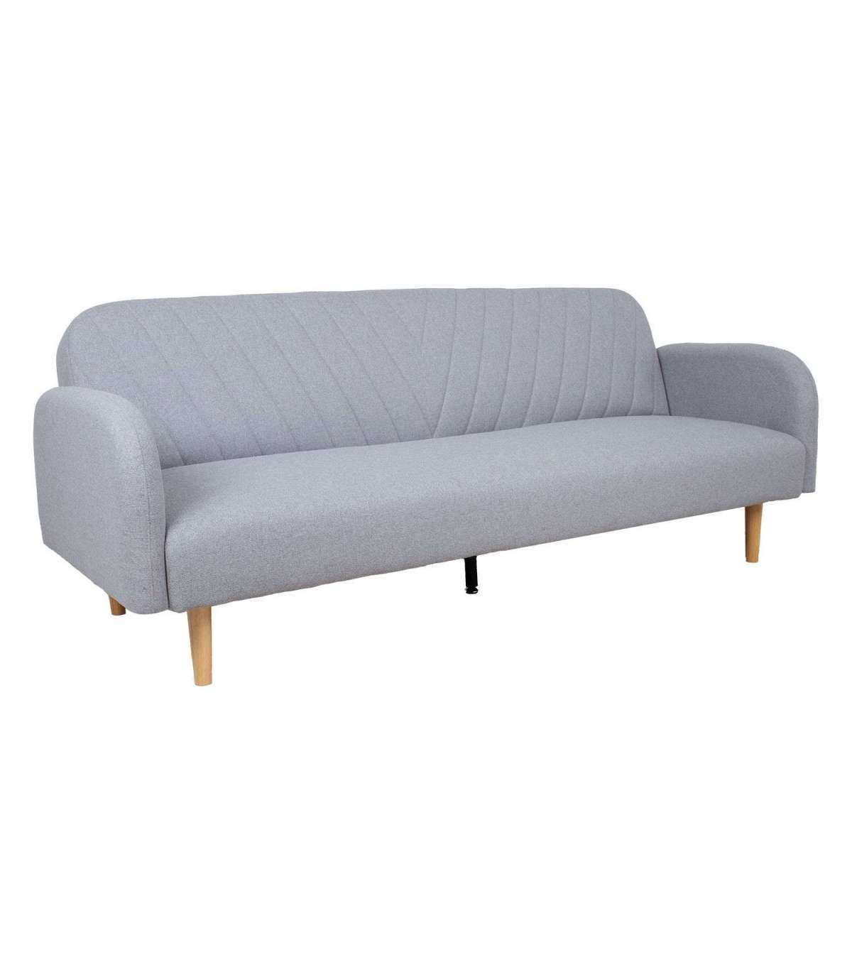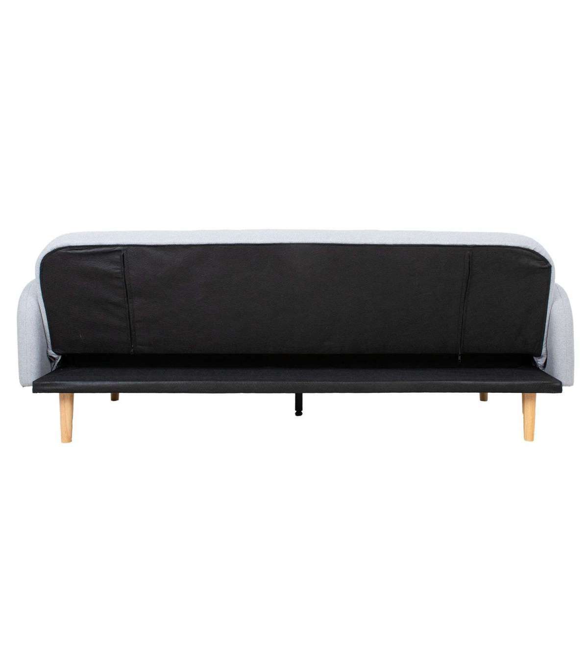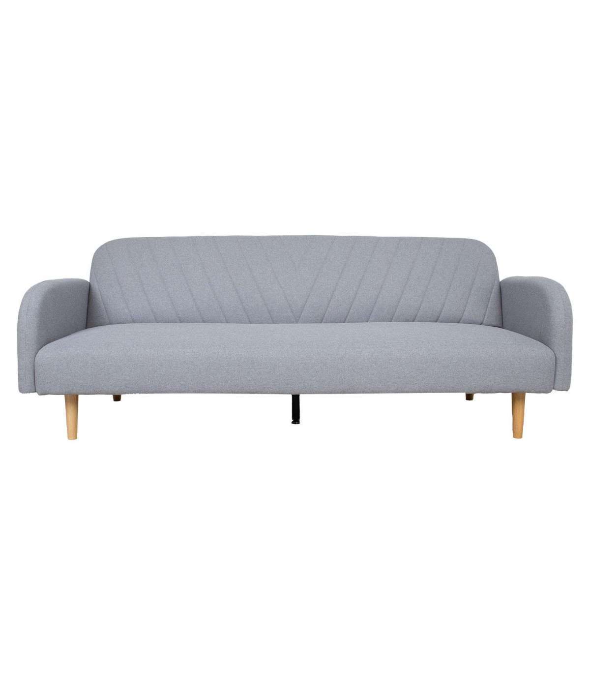 Diivanvoodi KARIN 208x80x80cm, hall. Diivani kattematerjal: 100% polüesterkangas. Karkass ja vedrustus: puit, vineer, MDF, siksak vedrustus. Diivani polstris on kasutatud taaskasutatud porolooni. Diivanil on click-clack mehhanism, mille abil on lihtne muuta diivan magamisasemeks. Diivani üldmõõdud on 208x80xH80cm. Diivanvoodi mõõdud avatuna on 187x105xH41cm. Diivanil on heledad puidust jalad.