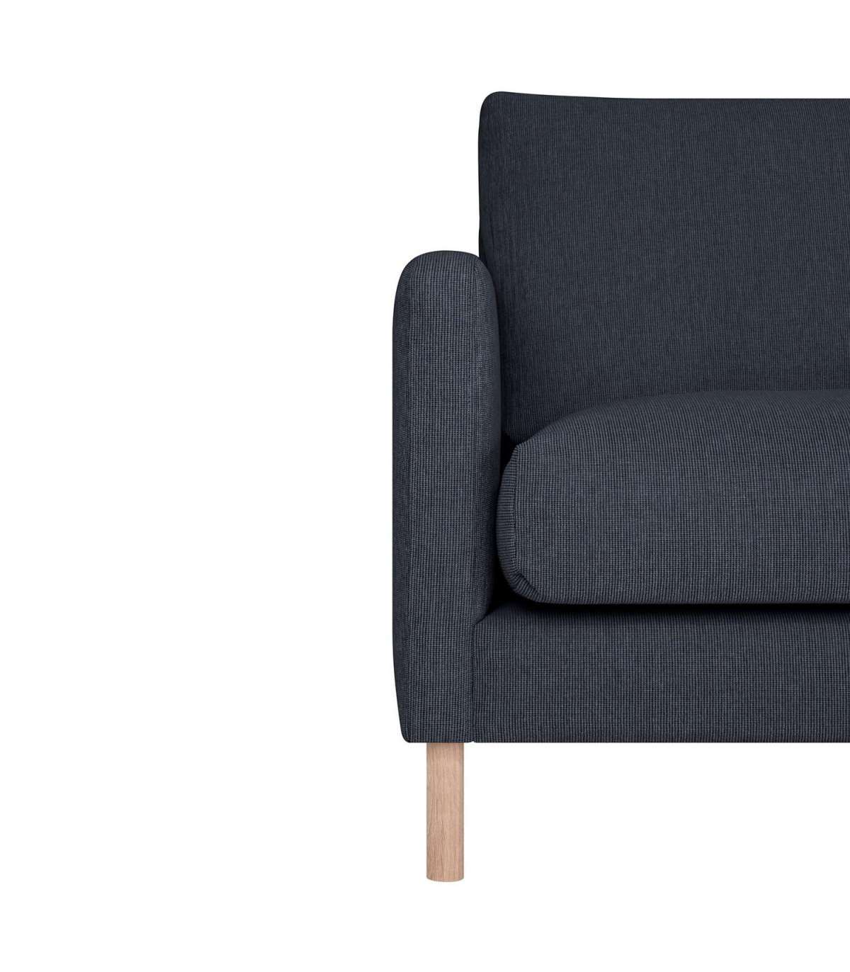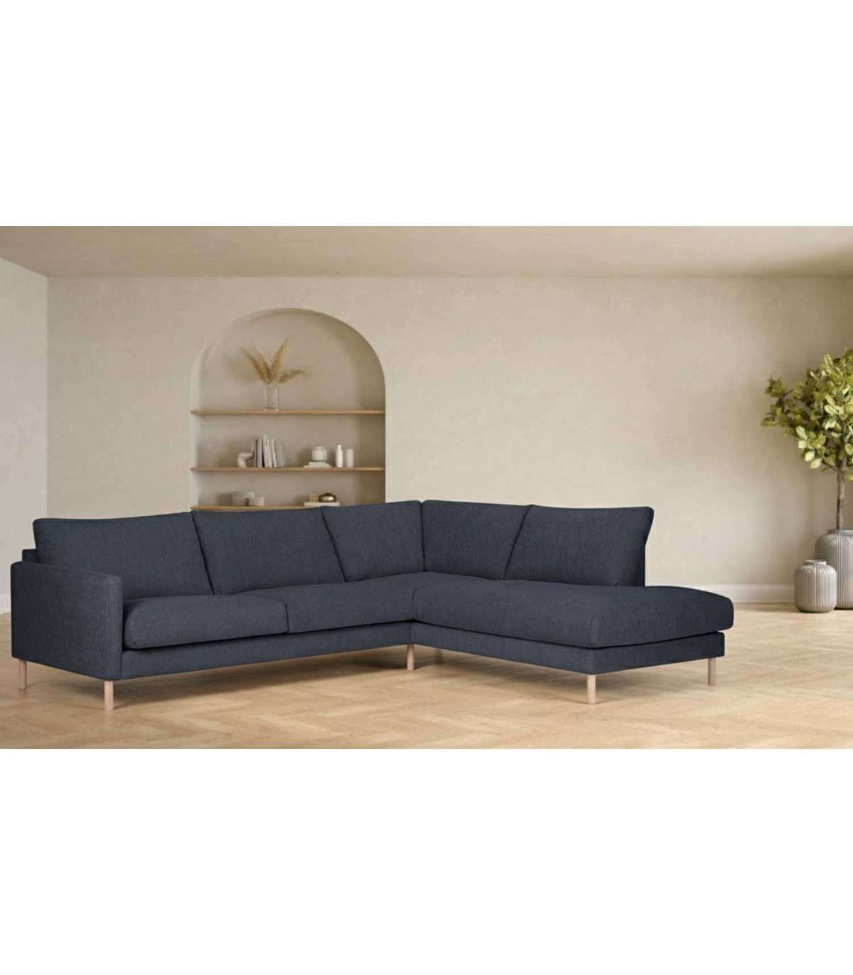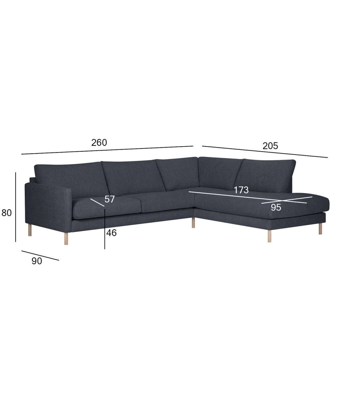 Угловой диван LISANNA RC синий. Диван обтянут синой полиэстеровой тканью. Подушки сиденья и спинки изготовлены из пеноматериала. Подушки имеют съемные чехлы. Ткань Martindale 30 000. Каркас изготовлен из массива дерева, фанеры, ДВП и ДСП. Каркас покрыт поролоном. Диван имеет зигзагообразную подвеску. Ножки дивана изготовлены из дуба. Высота сиденья 46 см, глубина 57 см. Размеры изделия 260x90/205xH80см. Продукт произведен в Литве.