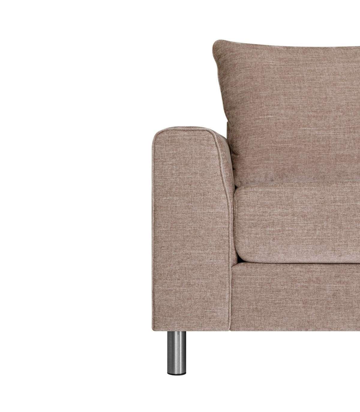 Угловой диван LEILA RC. Выступающая часть находится с правой стороны дивана. Есть четыре не переворачиваются подушки сиденья. Подушки изготовлены из пенопласта 145 мм 30 кг/м3 и 40 мм 20 кг/м3. Подушки покрыты полиэстеровой тканью плотностью 300 г/м2. Чехлы съемные. Есть четыре подушки спинки, которые являются свободными и двусторонними. Подушки наполнены полиэфирным волокном и поролоном. Наполнение находится в отдельной чехле. Подушки спинки обтянуты тканью из полиэстера плотностью 130 г/м2. Чехлы съемные. Каркас изготавливается из массива дерева, фанеры, ДВП и ДСП. Каркас покрыт пенопластом 6мм 20кг/м3. Верх подлокотников покрыт пенопластом 20 мм плотностью 35 кг/м3 и тканью из полиэстера плотностью 300 г/м2. Изделие имеет зигзагообразную подвеску, обтянутую тканью. У дивана семь металлических ножек. Размеры ножек D50xH120мм. Размеры изделия 269x210/92xH89см.