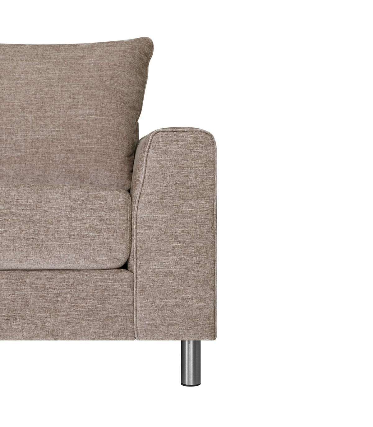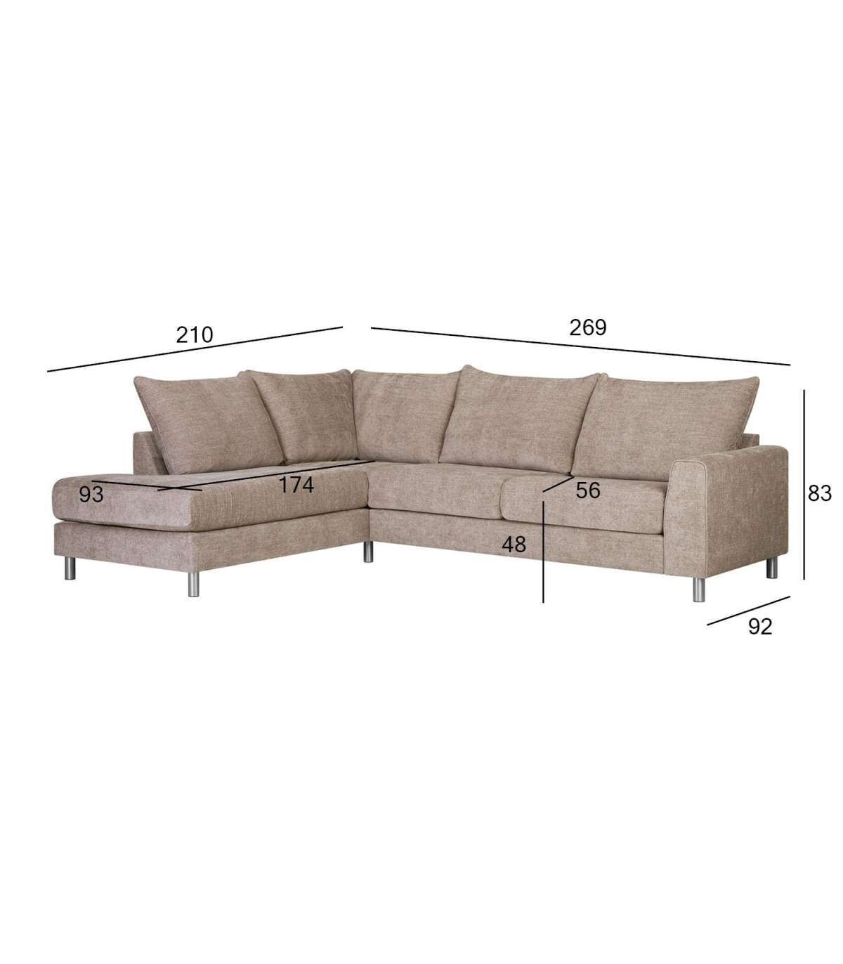 Угловой диван LEILA LC. Выступающая часть находится с левой стороны дивана. Есть четыре не переворачиваются подушки сиденья. Подушки изготовлены из пенопласта 145 мм 30 кг/м3 и 40 мм 20 кг/м3. Подушки покрыты полиэстеровой тканью плотностью 300 г/м2. Чехлы съемные. Есть четыре подушки спинки, которые являются свободными и двусторонними. Подушки наполнены полиэфирным волокном и поролоном. Наполнение находится в отдельной чехле. Подушки спинки обтянуты тканью из полиэстера плотностью 130 г/м2. Чехлы съемные. Каркас изготавливается из массива дерева, фанеры, ДВП и ДСП. Каркас покрыт пенопластом 6мм 20кг/м3. Верх подлокотников покрыт пенопластом 20 мм плотностью 35 кг/м3 и тканью из полиэстера плотностью 300 г/м2. Изделие имеет зигзагообразную подвеску, обтянутую тканью. У дивана семь металлических ножек. Размеры ножек D50xH120мм. Размеры изделия 269x210/92xH89см.