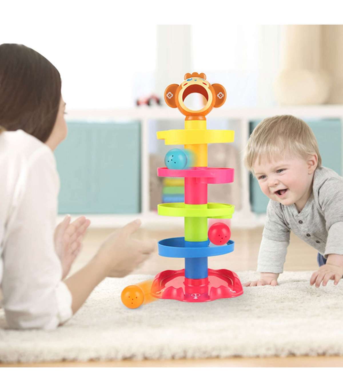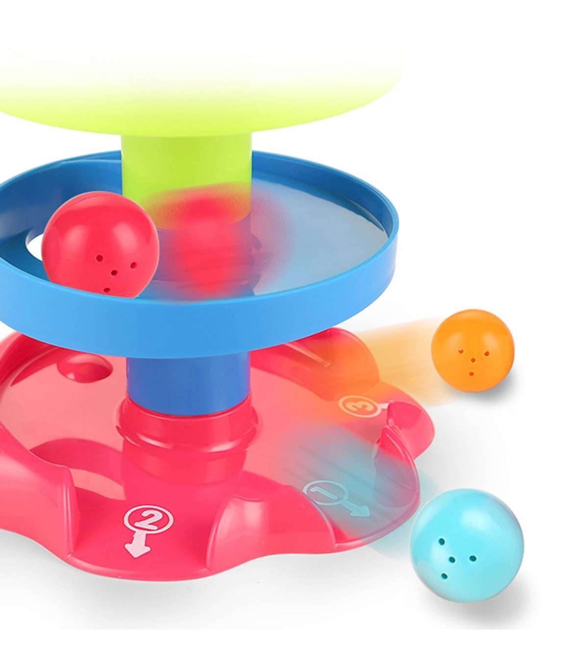 Шариковая дорожка от WOOPIE — это спиральная башня, обеспечивающая бесконечное развлечение. Этот красочный набор состоит из 6 цветных деталей, которые малыш может с лёгкостью складывать друг на друга. Шарики катятся по сегментам конструкции и в конце выпадают через один из трёх выходов. Игрушка оснащена 3 лёгкими и удобными для захвата шариками разных цветов, которые при движении издают звук. Размер подходит для маленьких ручек и помогает развивать зрительно-моторную координацию.