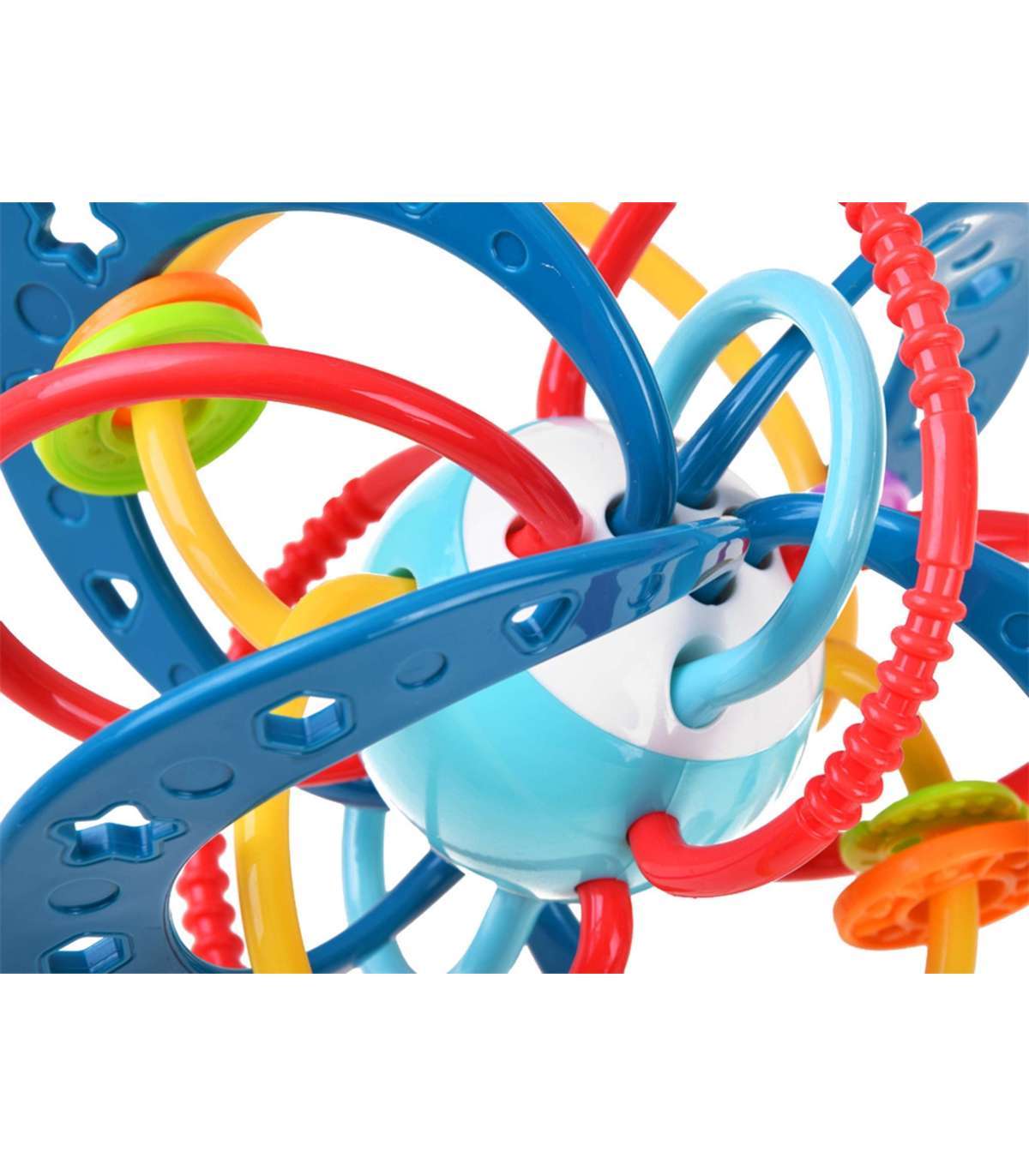 Сенсорная игрушка от бренда WOOPIE содержит множество фактур, цветов, форм и функций. Она сконструирована безопасно для ребёнка, без острых краёв, и имеет мягкие элементы, которые можно использовать как прорезыватель. Игрушка влияет на развитие осязания, зрения и слуха. В ней есть погремушка, которая может привлечь внимание ребёнка. На гибких завитках можно перемещать расположенные цветные элементы.