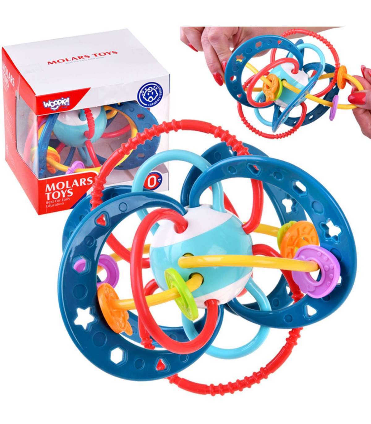 WOOPIE BABY Сенсорная игрушка 2 в 1 прорезыватель-погремушка Монтессори
