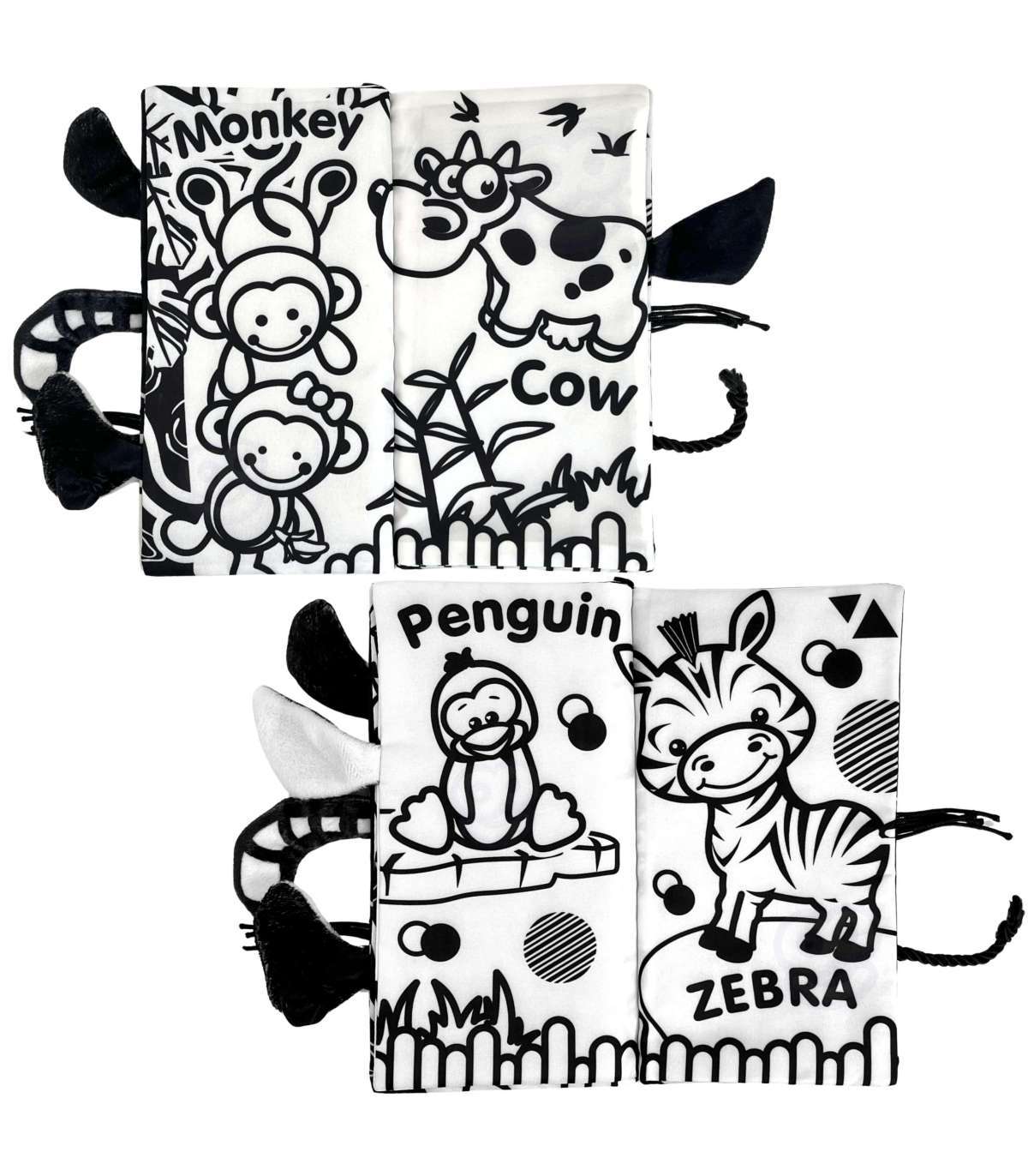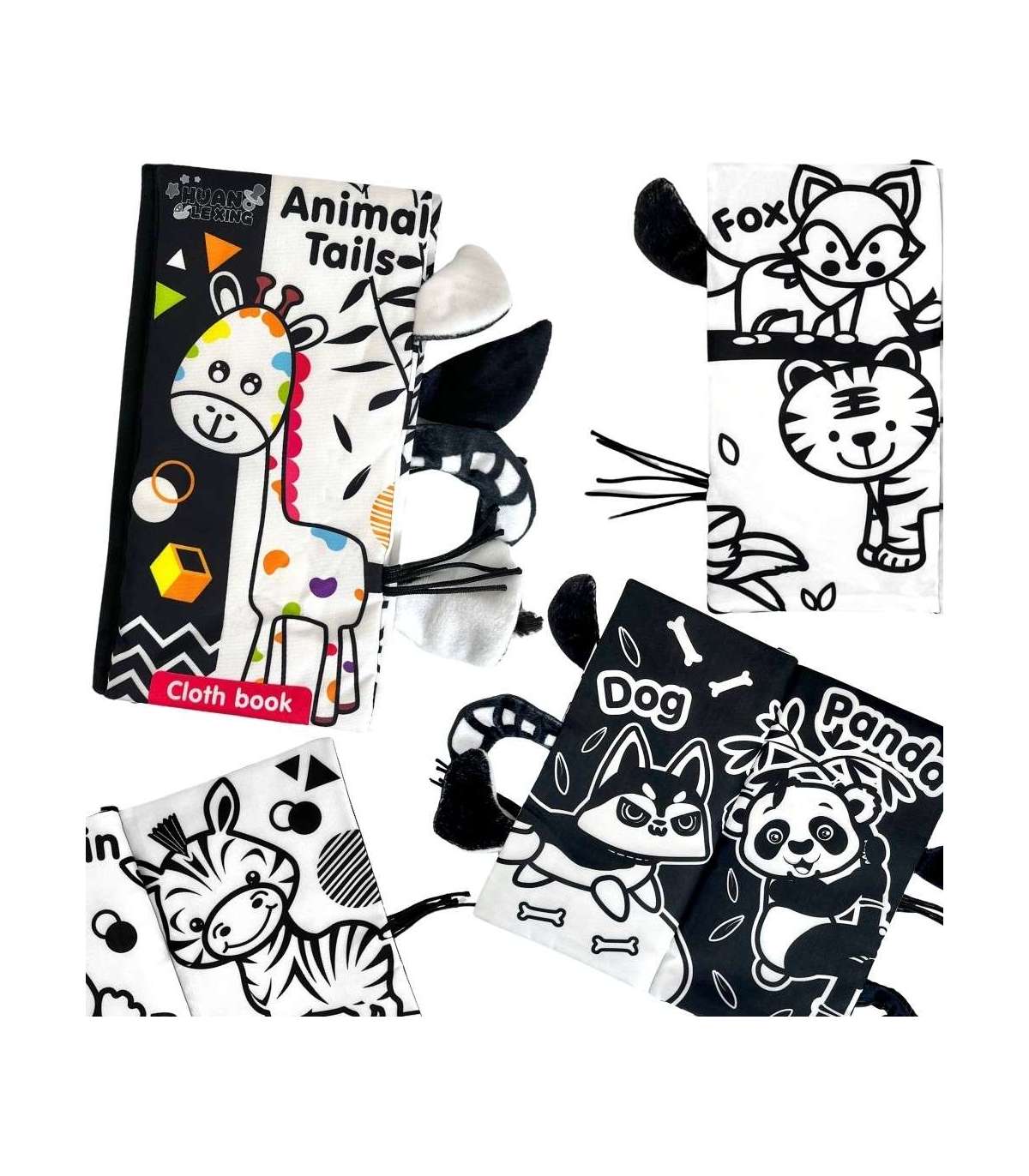 Контрастная книжечка от бренда Woopie, созданная специально для малышей. Шелестящие и очень мягкие на ощупь страницы развивают чувства малыша, выполняя сенсорную функцию. Черно-белые иллюстрации развивают зрение и наблюдательность. На каждой странице выступают хвостики разных зверюшек; хватает их малыш и тренирует глазо-руковую координацию. Книжечка может служить в качестве подвески для коляски или кроватки, крепится на липучке.