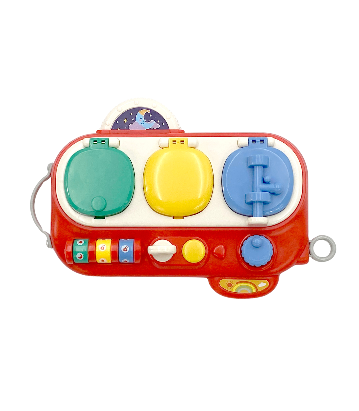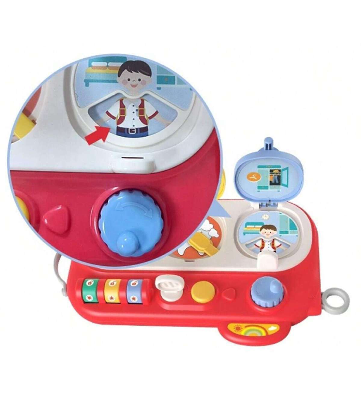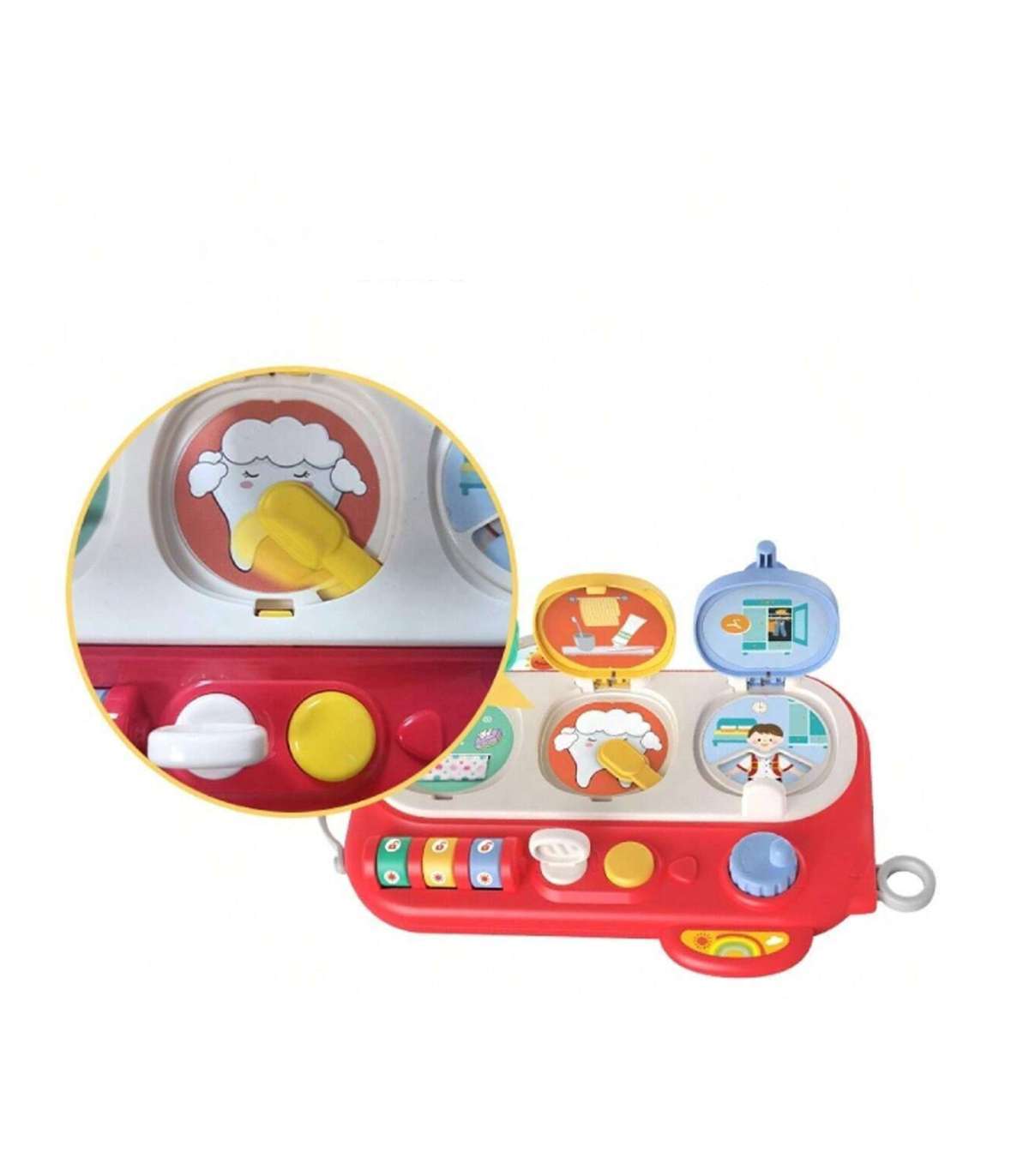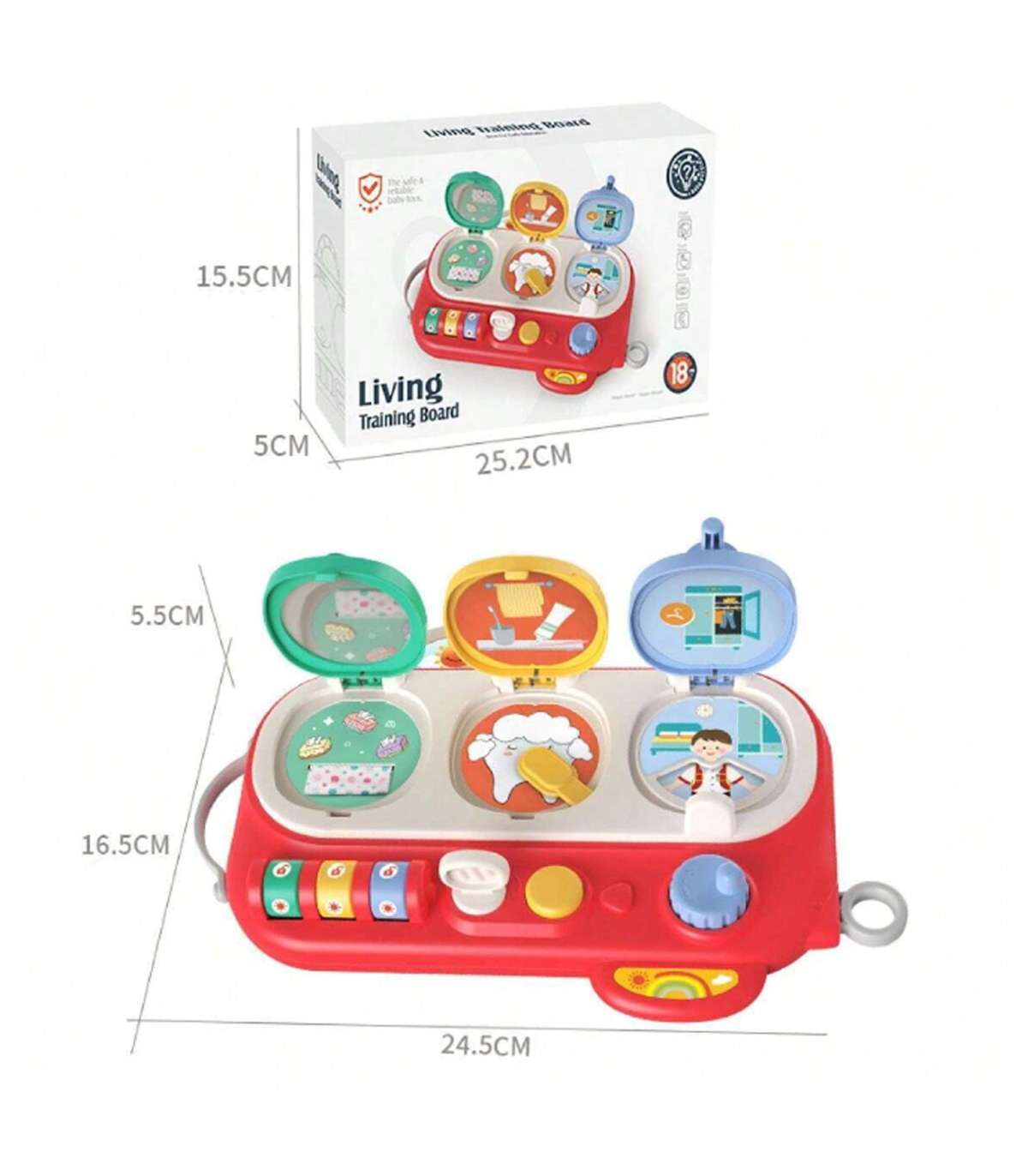 Открой и Проверь — это необычайно интересная обучающая интерактивная игрушка, которая развивает мелкую моторику, зрительные навыки и учит причинно-следственному мышлению. Три разноцветных окошка-сюрприза вовлекают ребёнка в игру и в исследование новых возможностей. Зелёное окошко открывается с помощью кода — при открытии малыш обнаруживает цветные платочки. Жёлтое окошко открывается ключиком — внутри изображение зуба и подвижная зубная щётка. Синее окошко, открываемое кнопкой и поворотным механизмом, показывает мальчика и поле с одеждой для переодевания. Благодаря разнообразным активностям ребёнок нажимает, вращает и сдвигает элементы, развивая свои ручные навыки, воображение и креативность.
